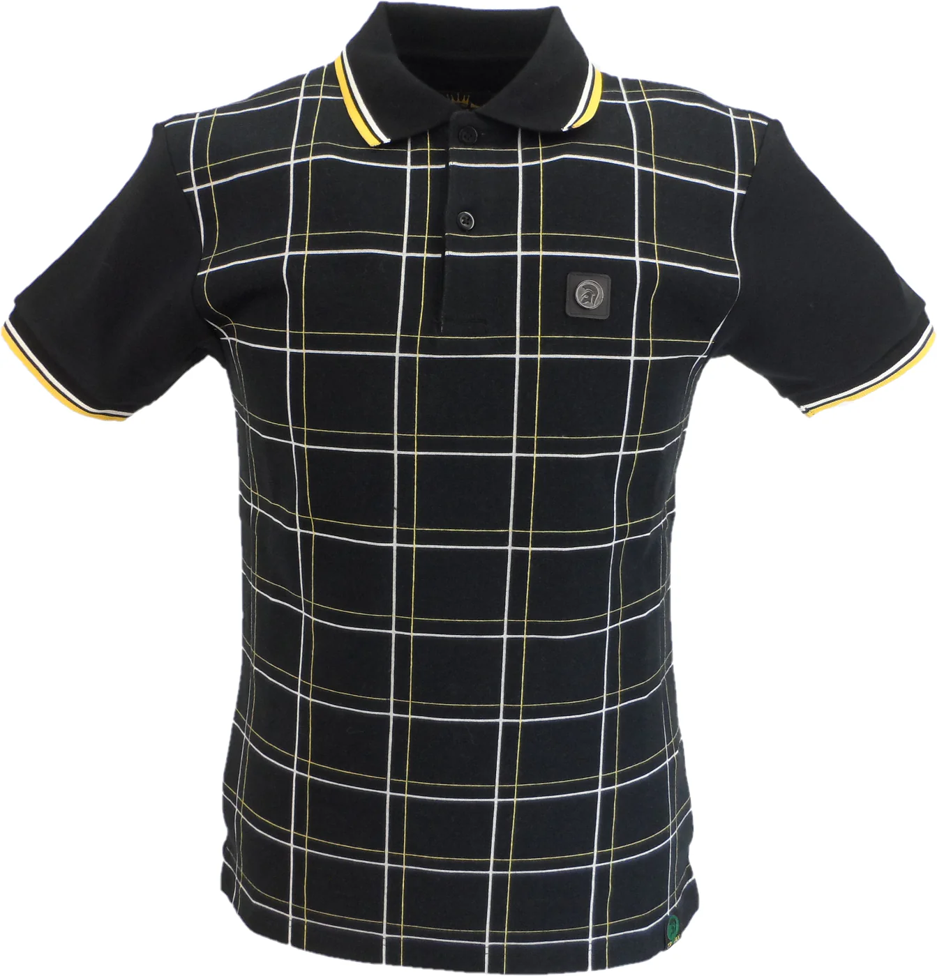 Trojan Mens Black Check Panel Polo Polo Shirt