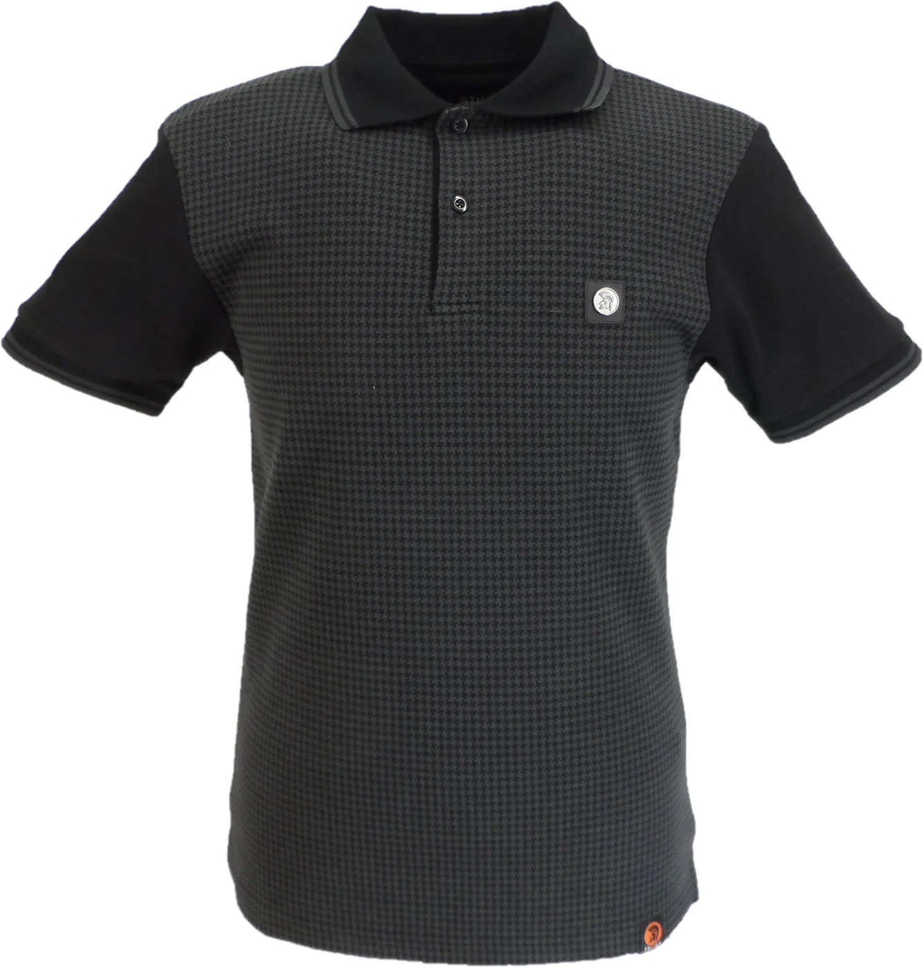 Trojan Mens Black Houndstooth Panel Polo Shirt