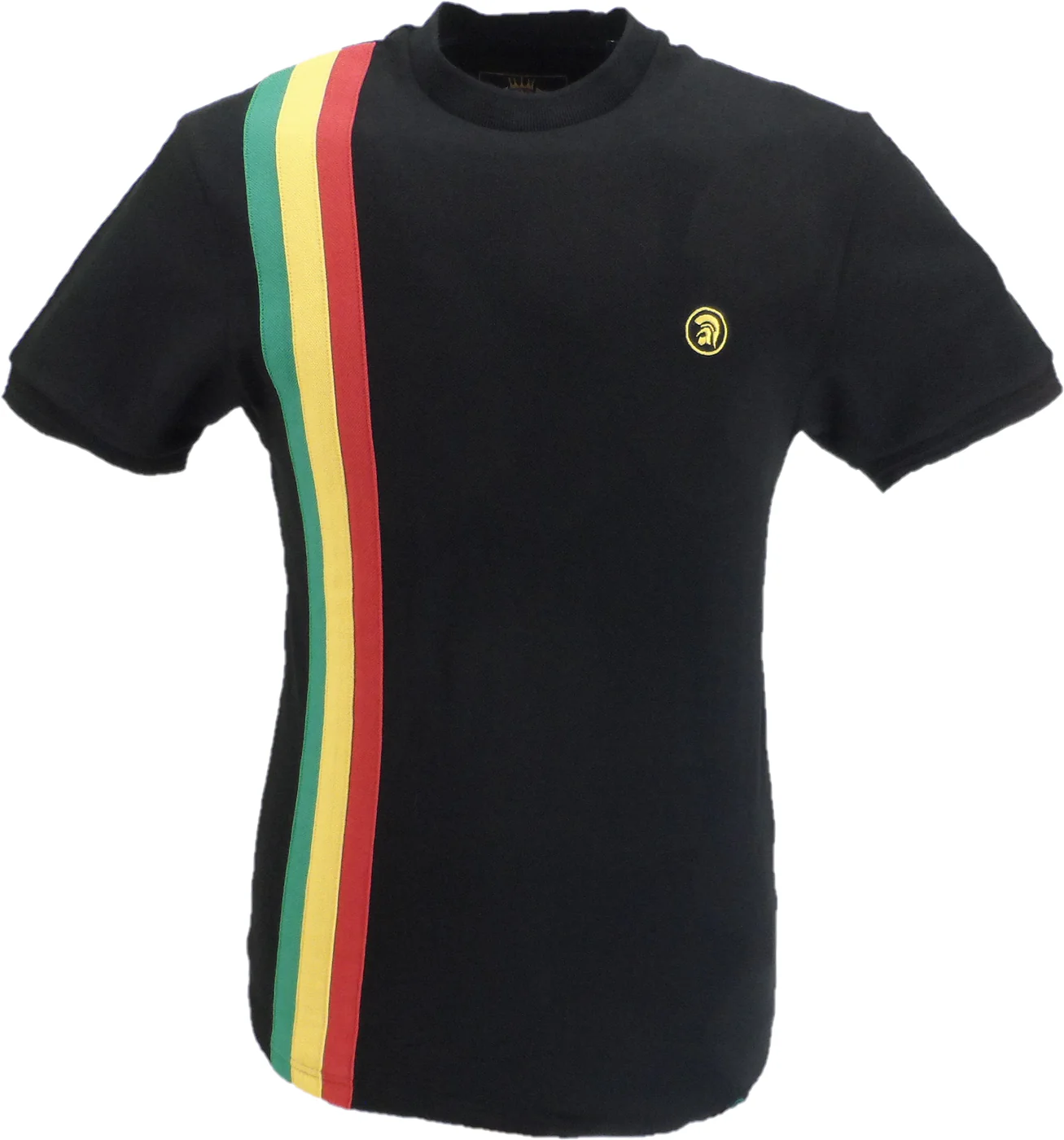 Trojan Mens Black Rasta Retro Pique T Shirt