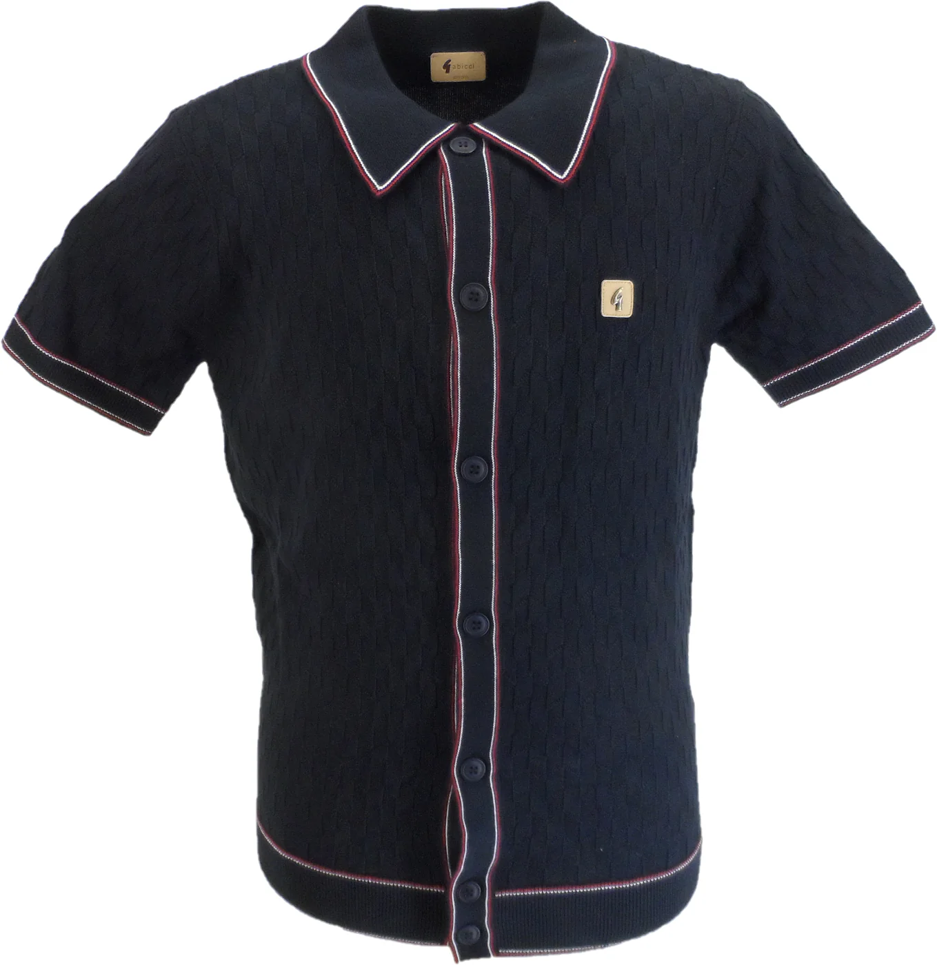 Gabicci Mens Navy Blue Textured Retro Knitted Polo