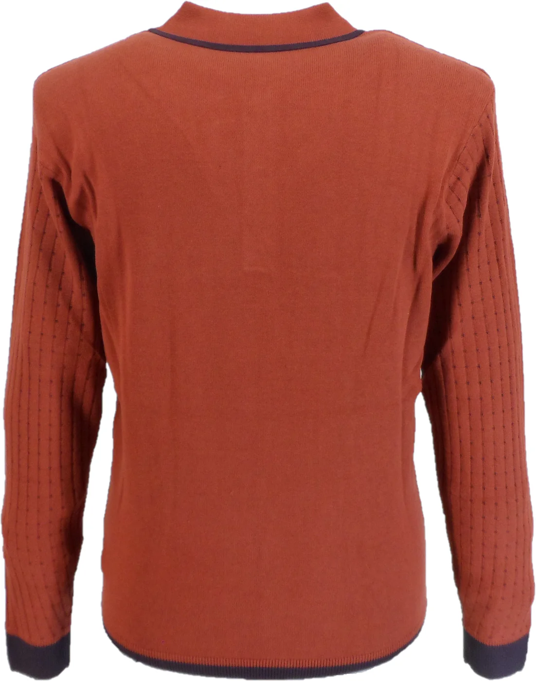 Gabicci Mens Rust Brown Textured Retro Knitted Polo