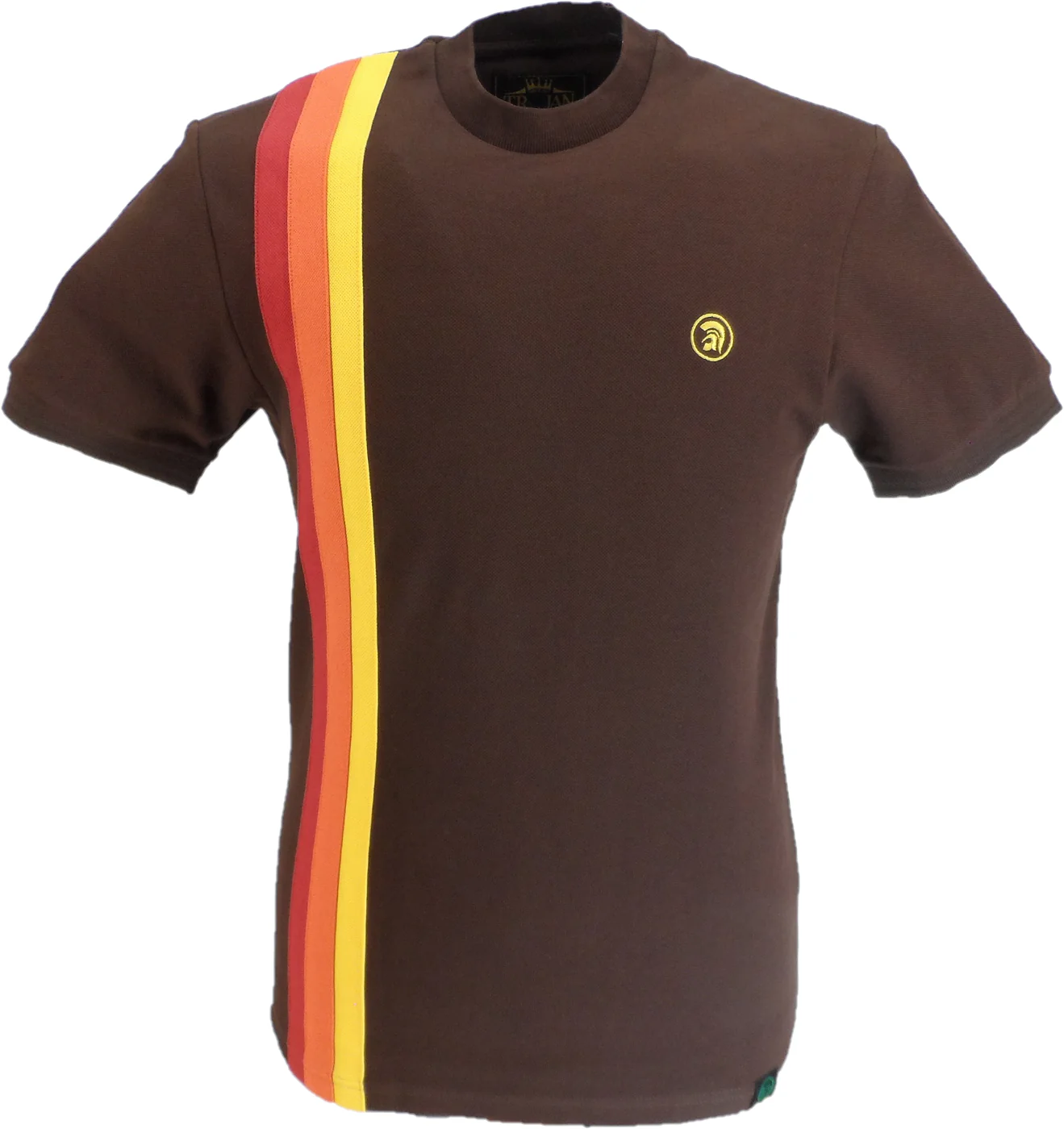 Trojan Mens Chocolate Brown Racing Stripe Pique T Shirt