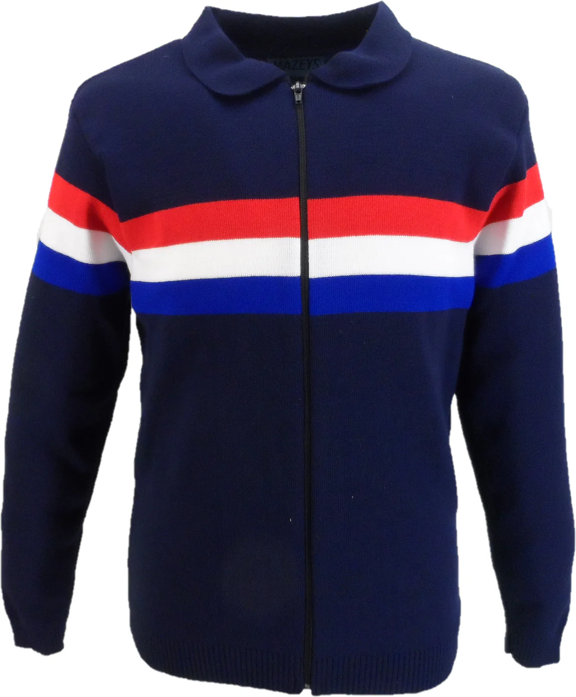 Mazeys Mens Navy ‘Gallagher’ Zip Through Fine Gauge Polo