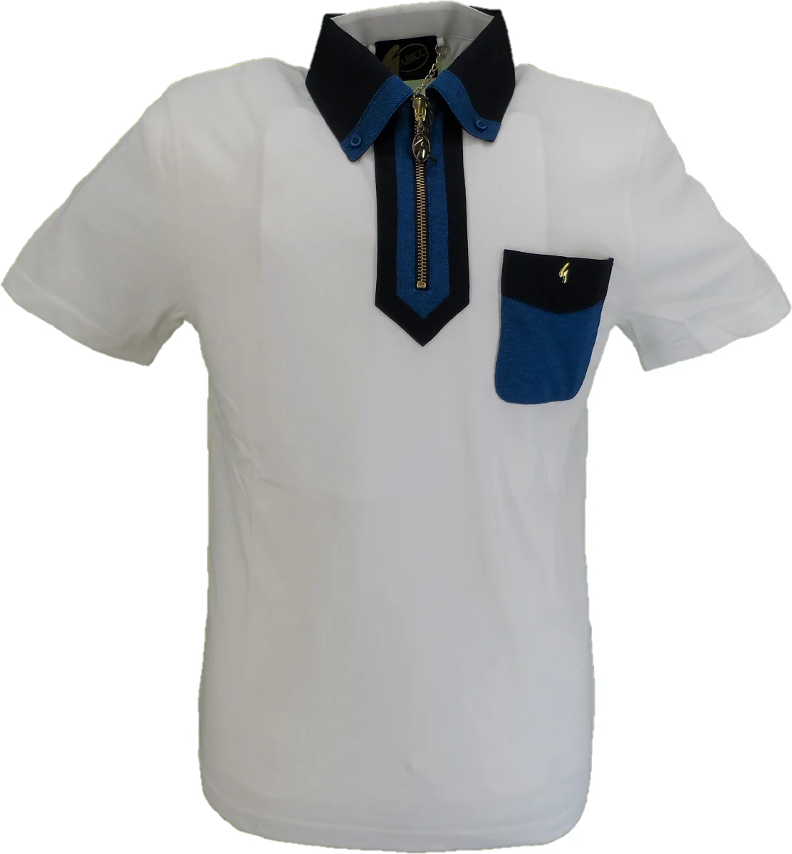 Gabicci Vintage Mens Cream Zipped Retro Mod Polo Shirt