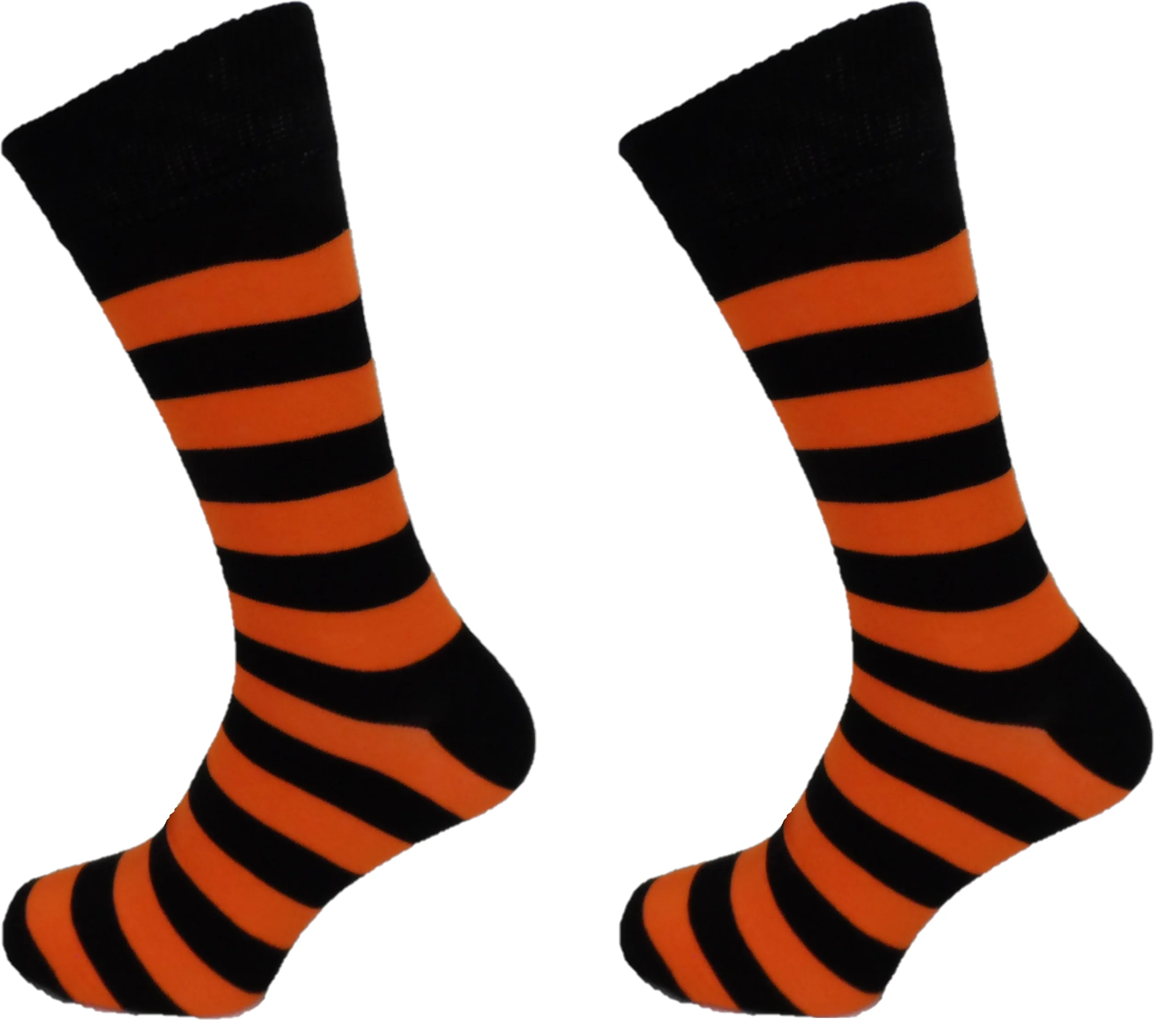 Mens 2 Pair Pack Orange and Black Striped Retro Socks