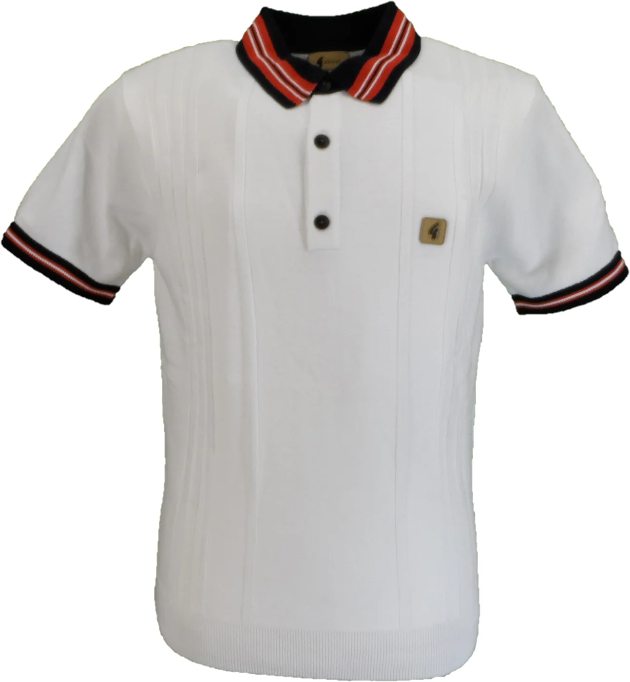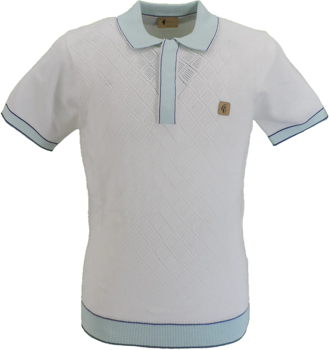 Gabicci Vintage Mens Soda White Knitted Polo Shirt