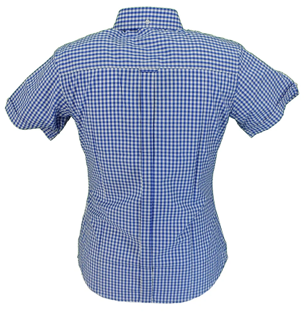 Relco Retro Blue Gingham Ladies Button Down Short Sleeved Shirts