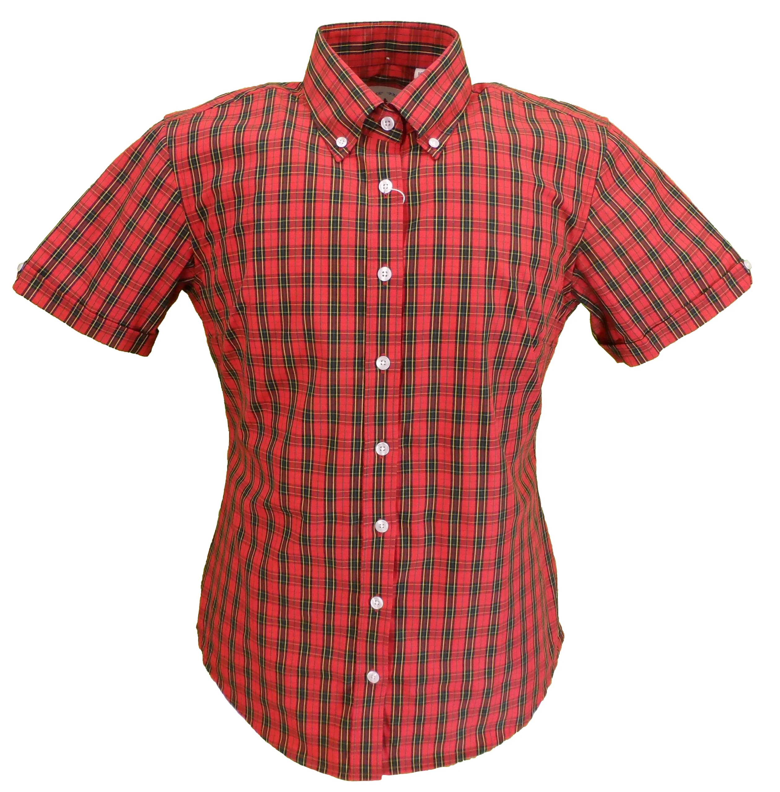 Relco Retro Red Tartan Ladies Button Down Short Sleeved Shirts