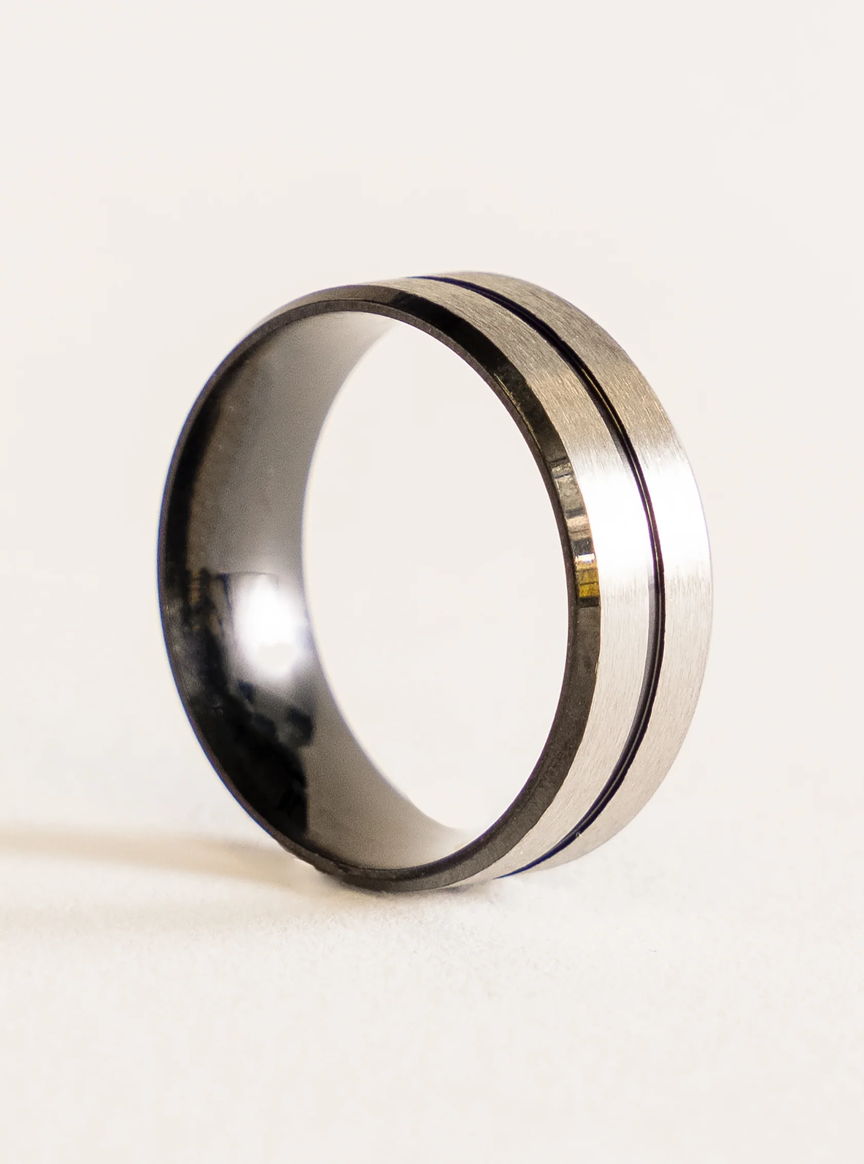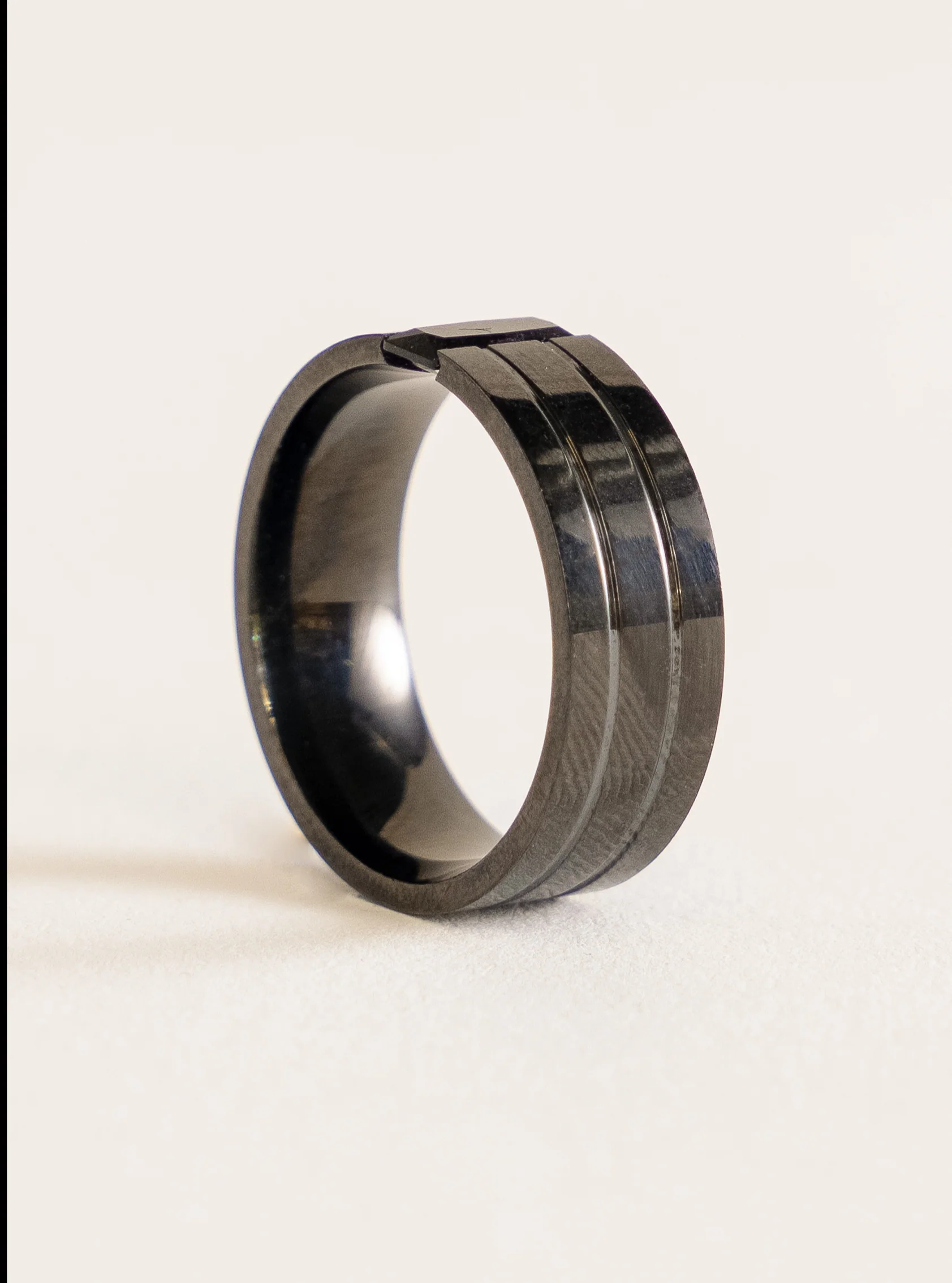 Black On It Groove Beveled Ring, Negro
