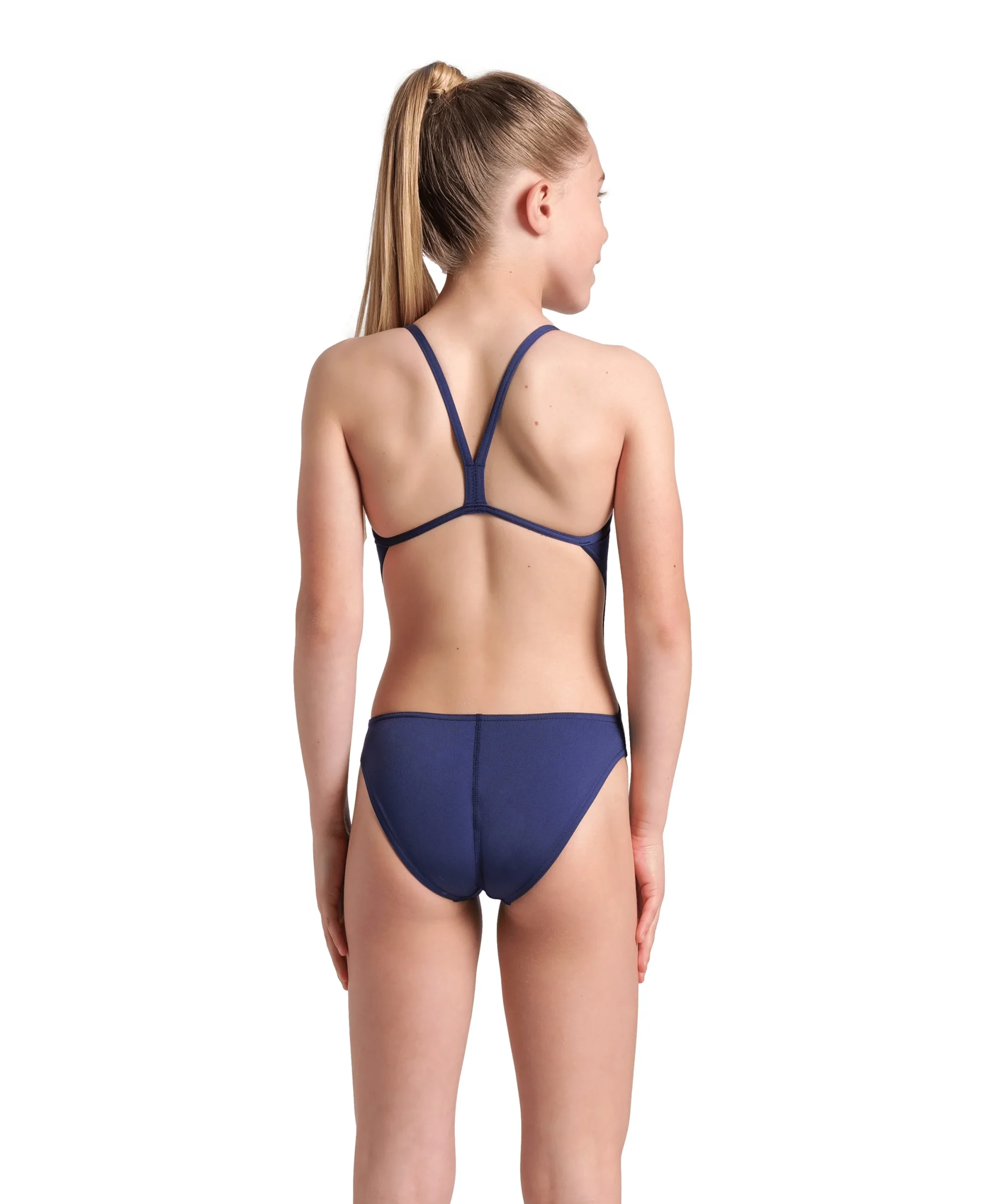 Bañador liso arena Performance para niña Swim Tech Team – Marino/Blanco