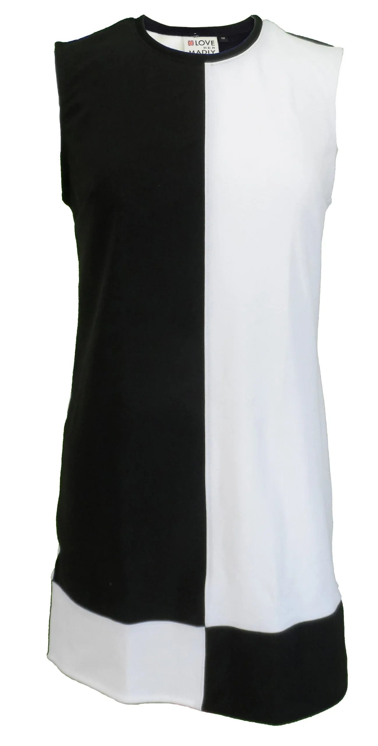 Mazeys Ladies 60s Retro Mod Vintage Black & White Quadrant Dress