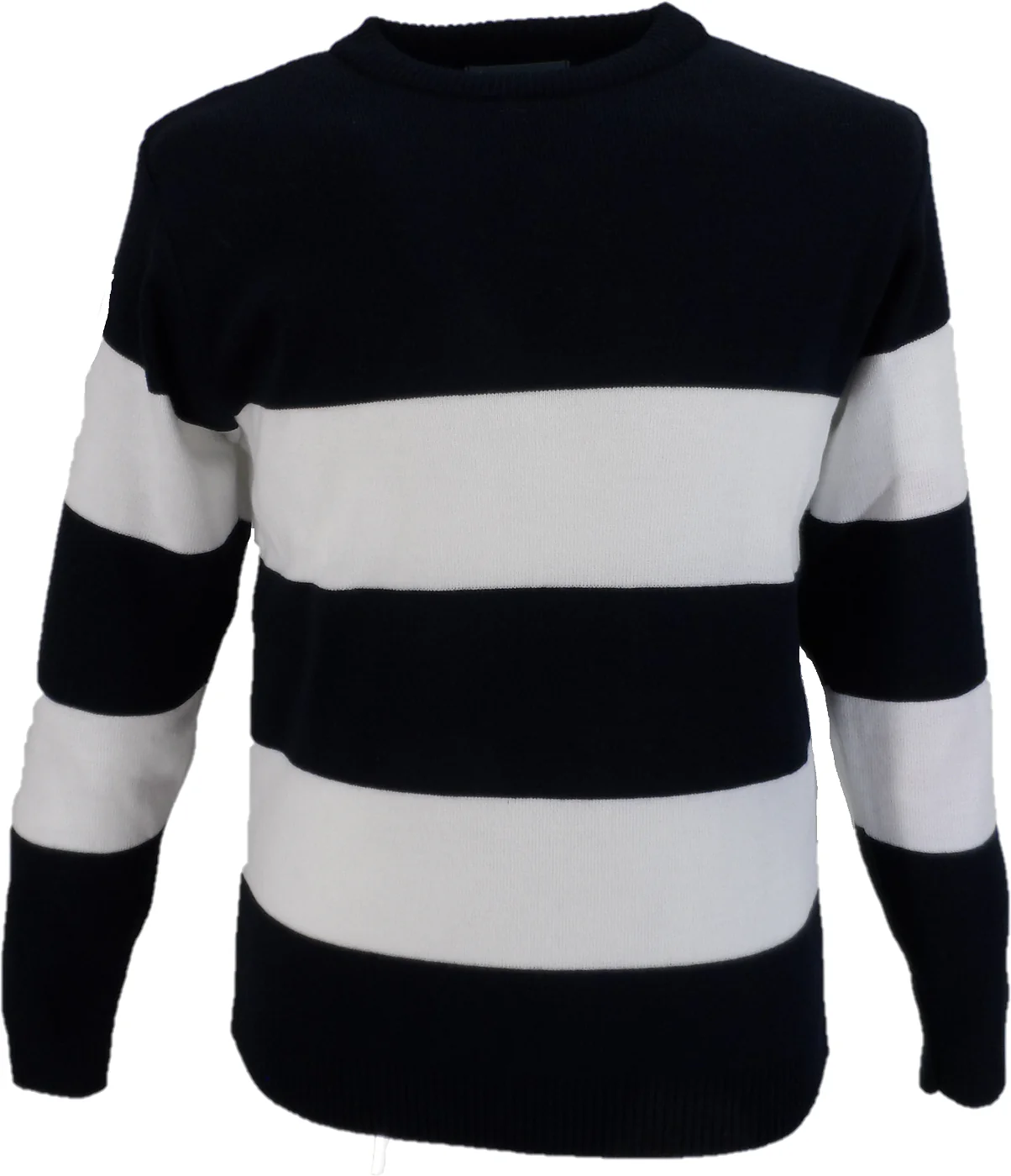 Mazeys Mens Navy/White Foxton Stripe Crew Neck Jumper