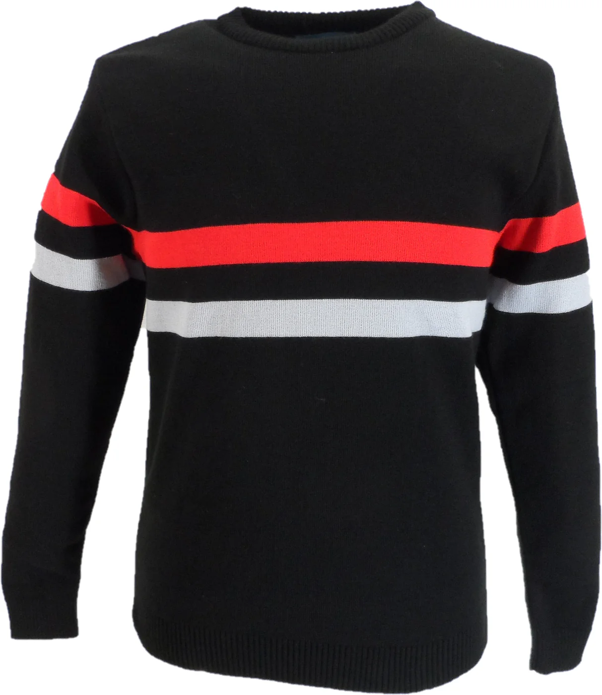 Mazeys Mens Black Horizontal Stripe Crew Neck Jumper