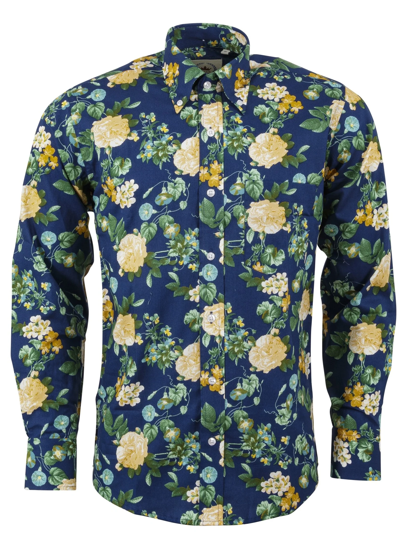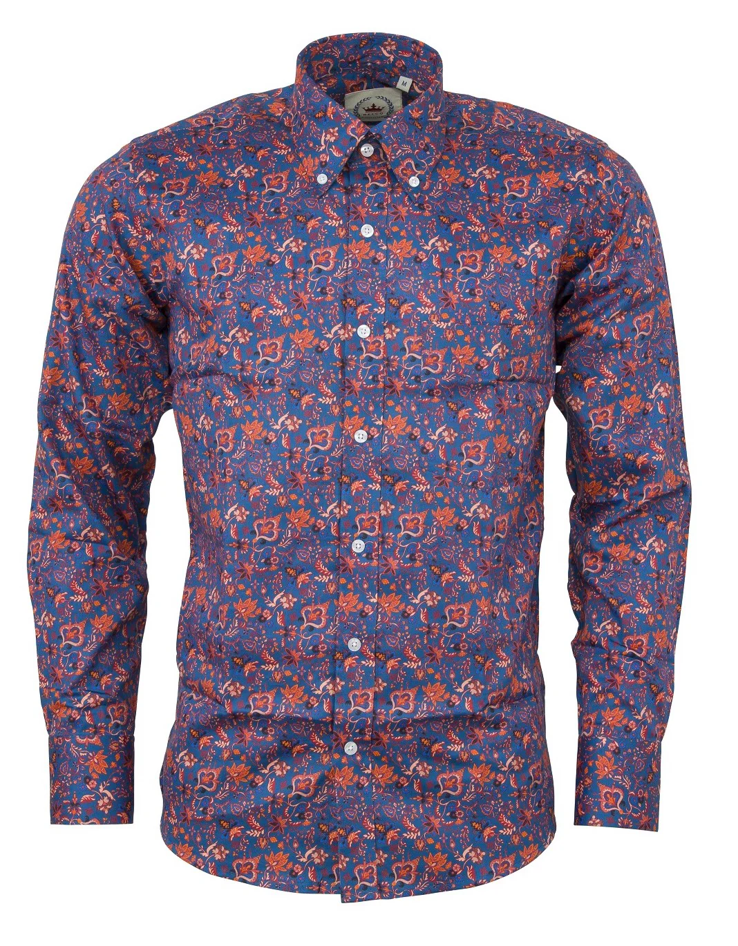Relco Blue Floral Long Sleeved Retro Mod Button Down Shirt