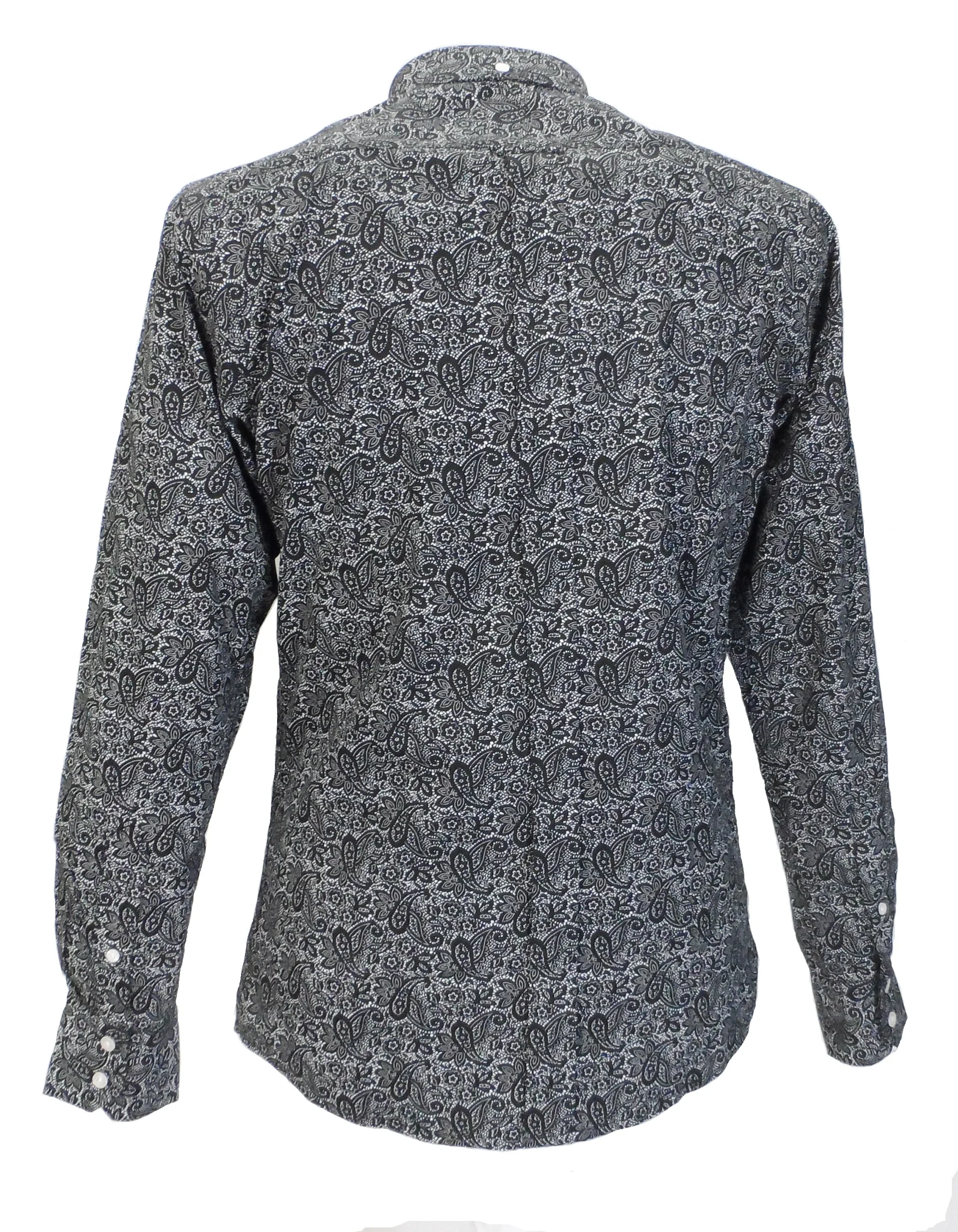 Relco Black Paisley 100% Cotton Long Sleeved Retro Mod Button Down Shirt
