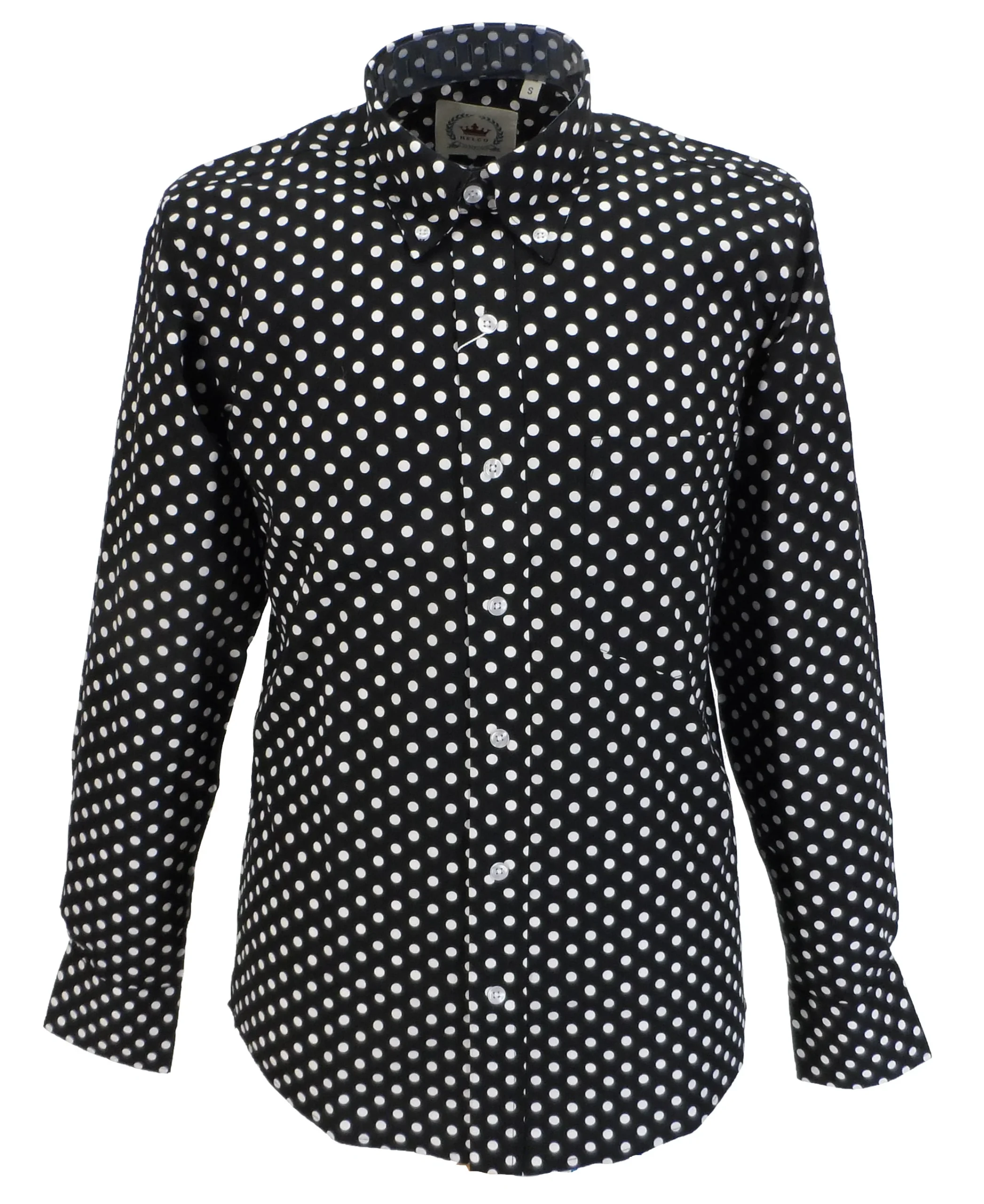 Relco Black/White Polka Dot Cotton Long Sleeved Retro Mod Button Down Shirts