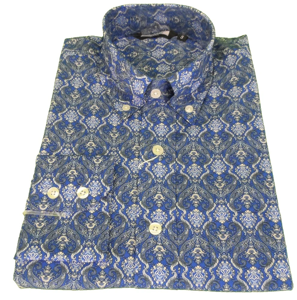 Relco Blue Paisley 100% Cotton Long Sleeved Button Down Shirts
