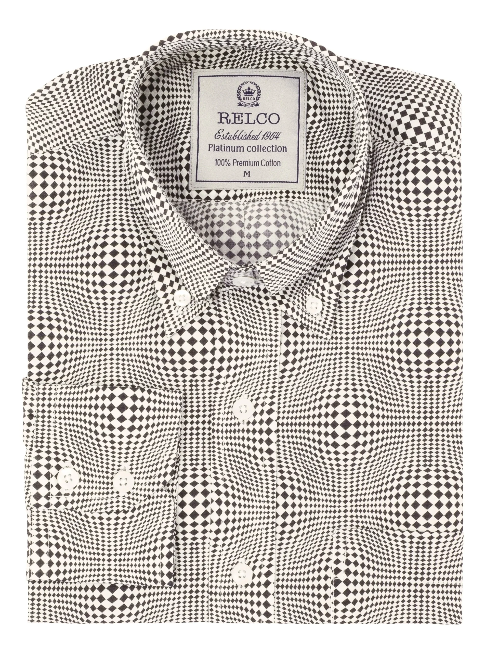 Relco Platinum Mens Geo Check Long Sleeved Retro Mod Button Down Shirt