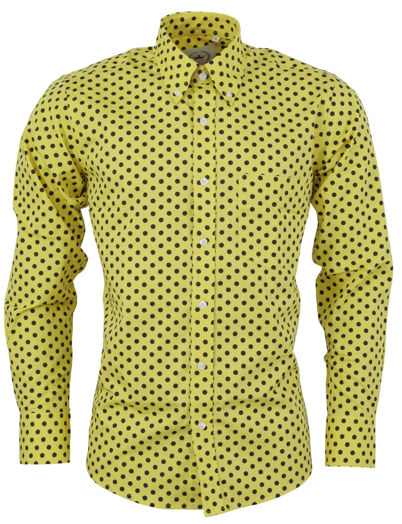 Relco Mustard and Black Polka Dot Mens Classic Mod Vintage Design Shirts