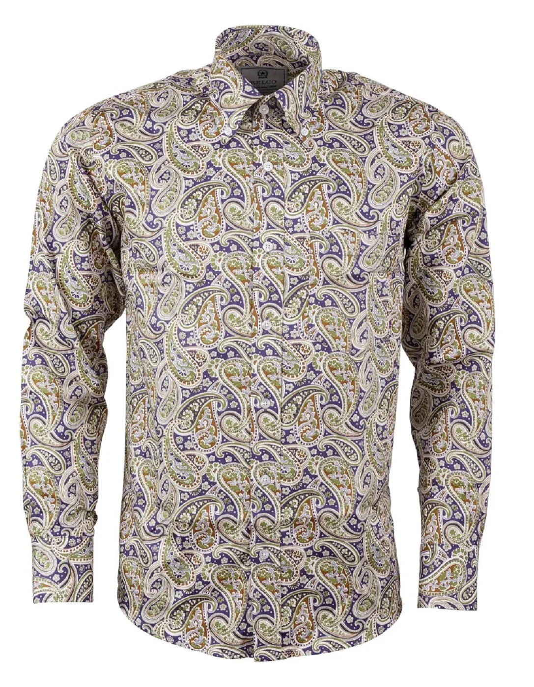 Relco Mustard Paisley 100% Cotton Long Sleeved Retro Mod Button Down Shirt