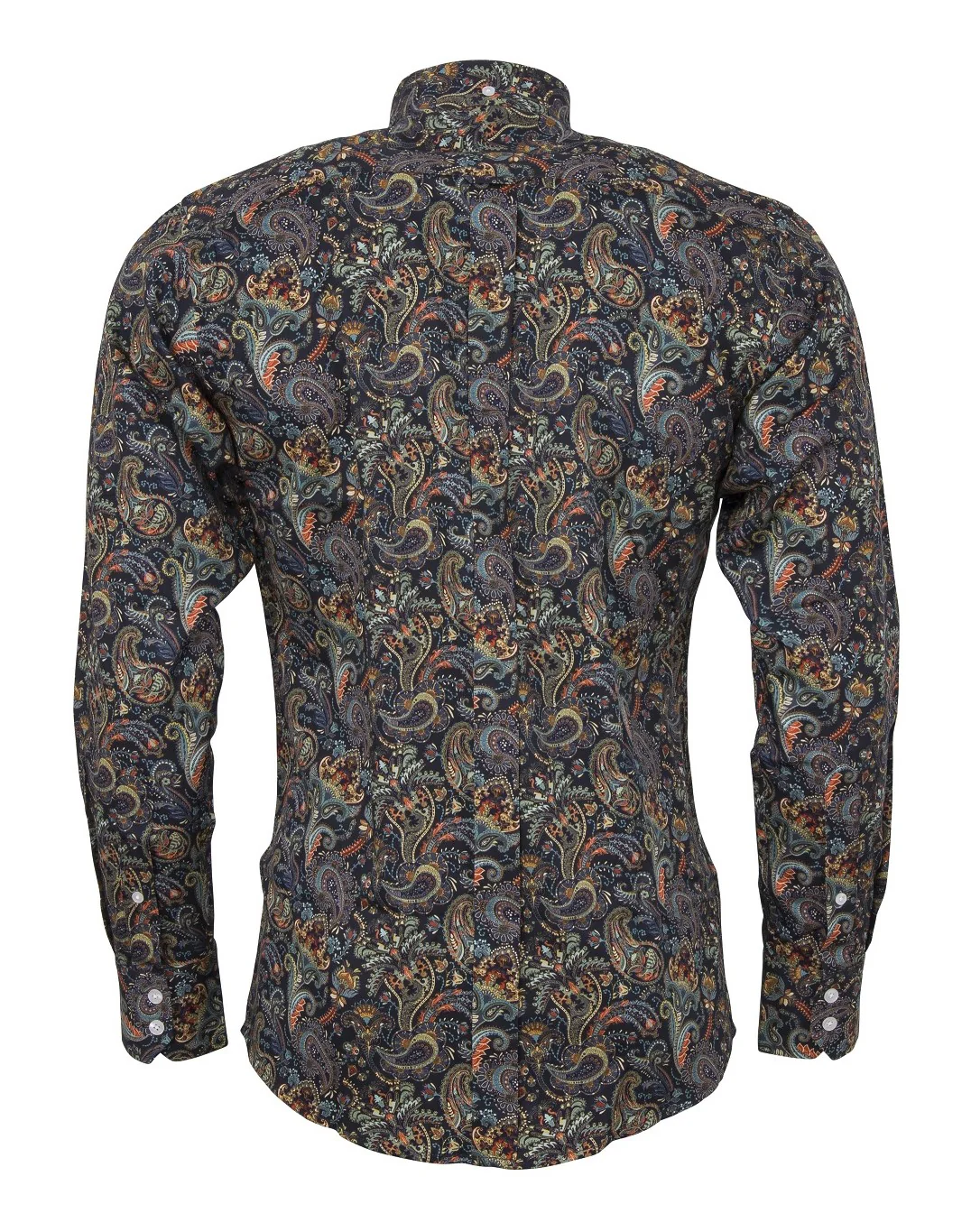 Relco Navy Paisley 100% Cotton Long Sleeved Retro Mod Button Down Shirt