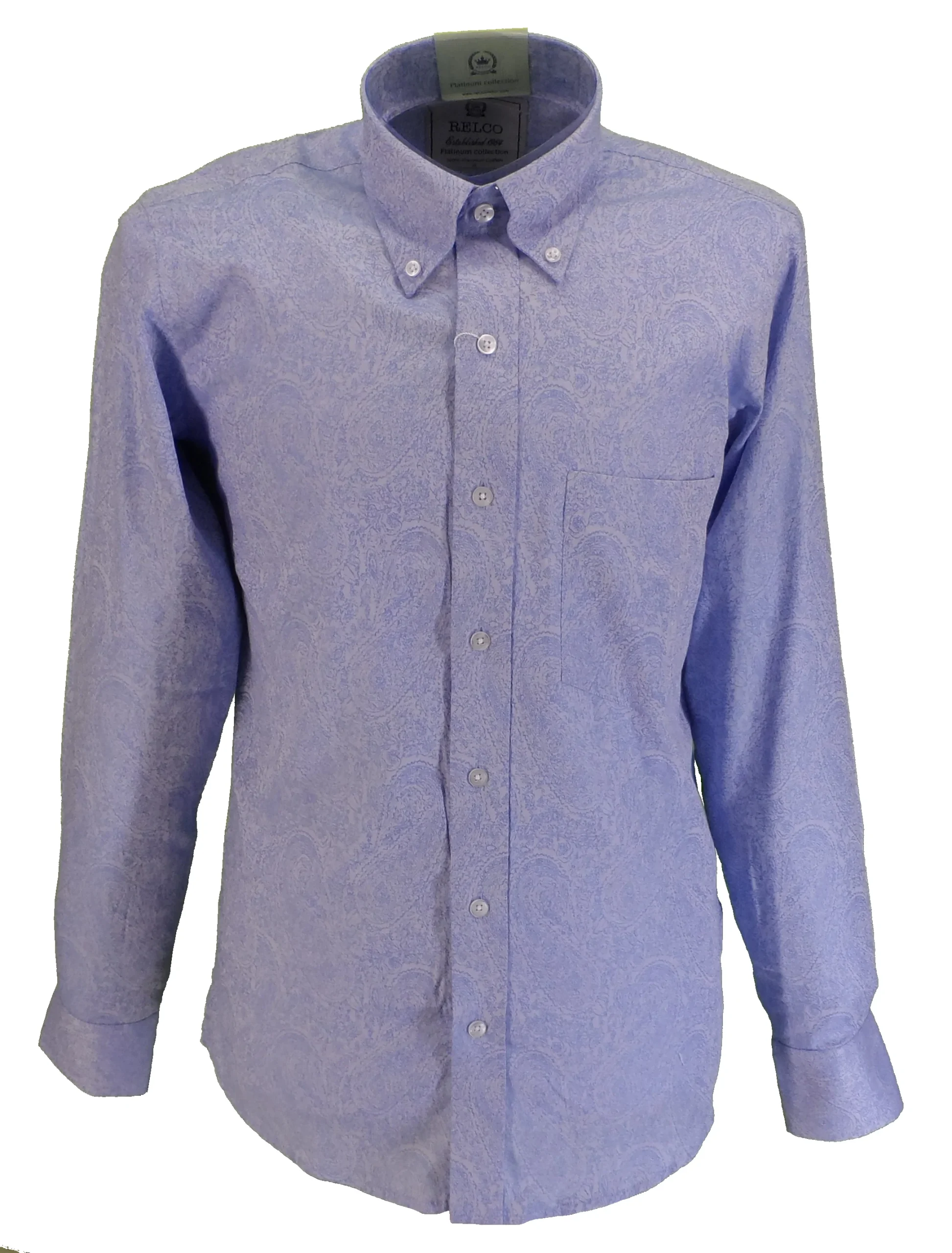Relco Platinum Mens Blue Paisley Cotton Long Sleeved Shirt