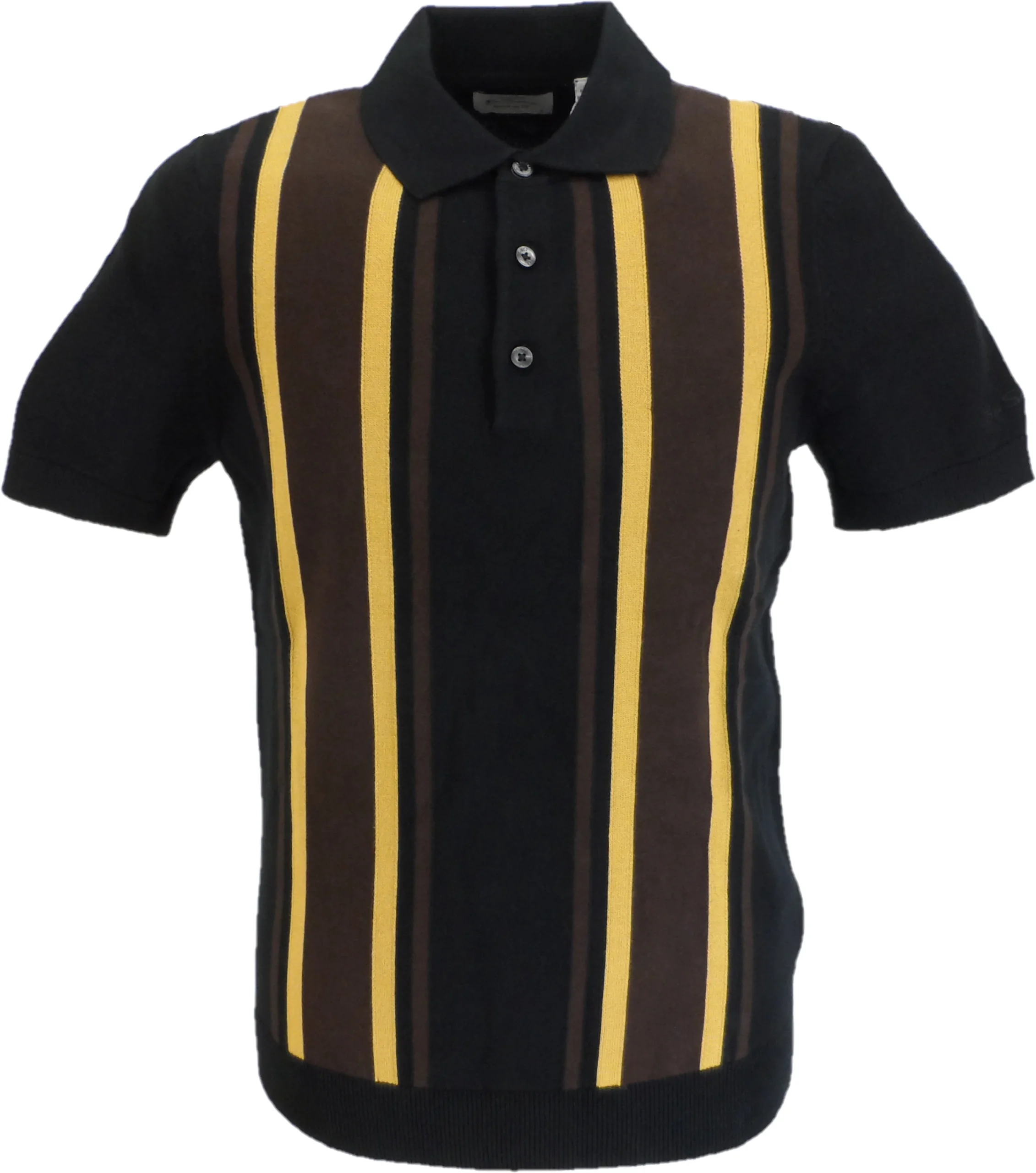 Ben Sherman Black Knitted Striped Mod Polo Shirt