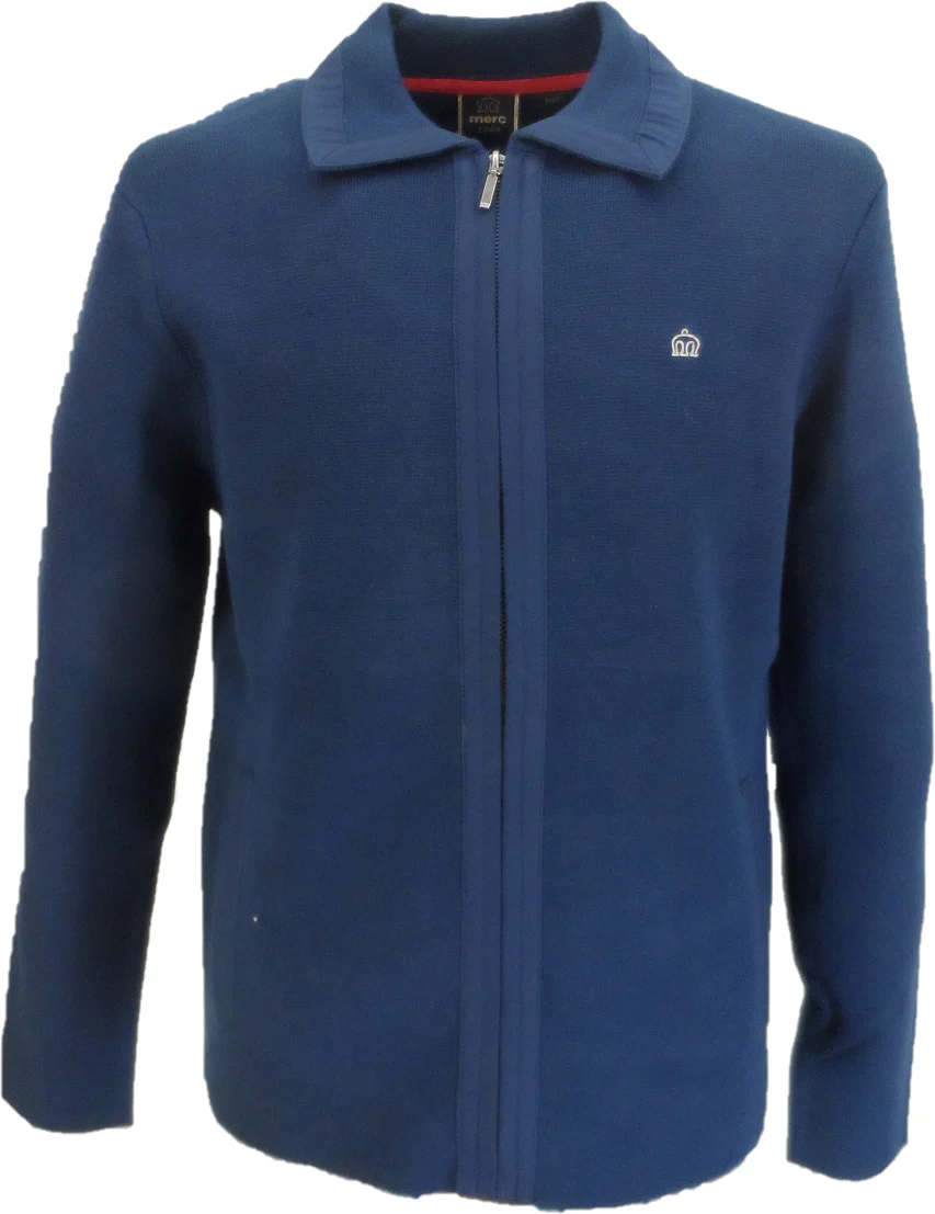 Merc Gover Navy Mens Knitted Zipped Cardigan Polo