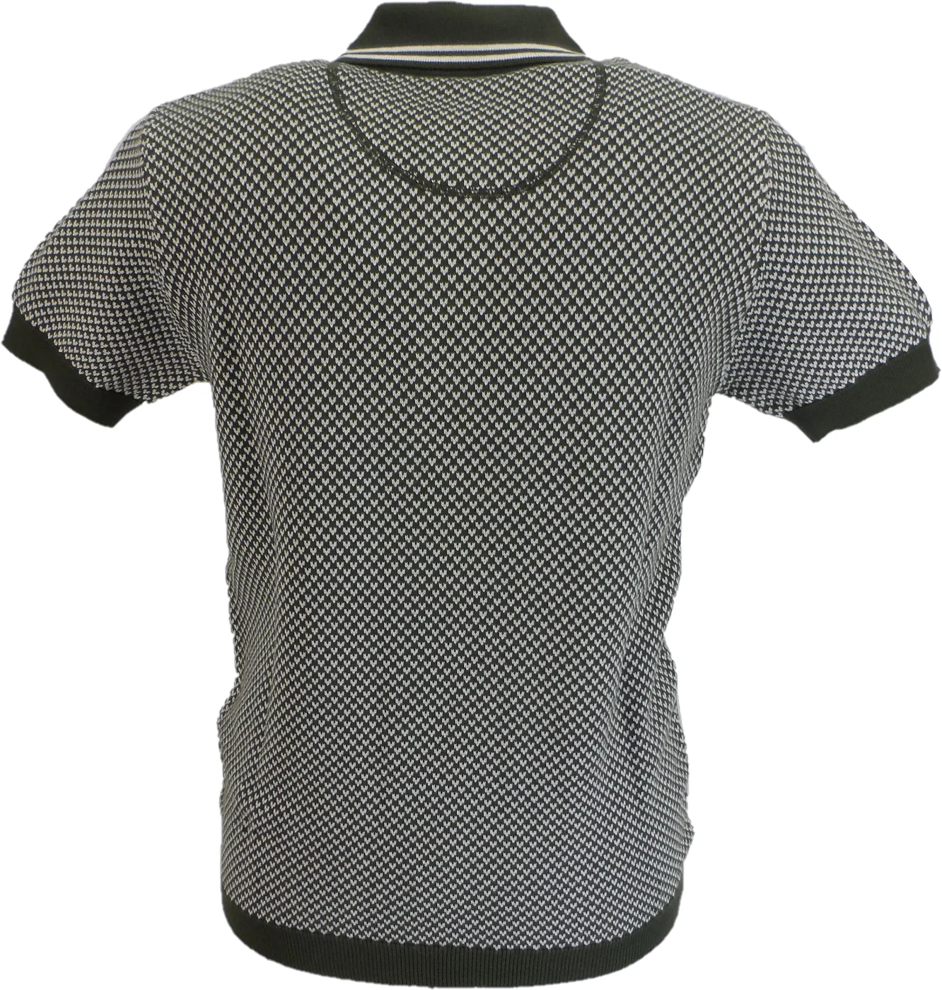 Trojan Mens Army Green Pattern Fine Gauge Knitted Polo Shirt