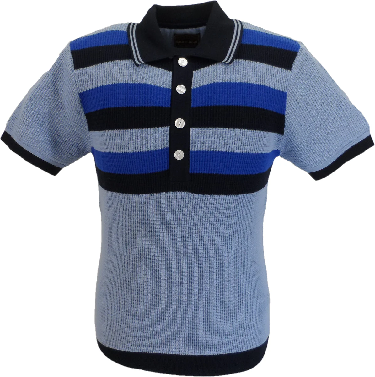 Ska & Soul Mens Sky Blue Striped Waffle Knited Polo Shirt