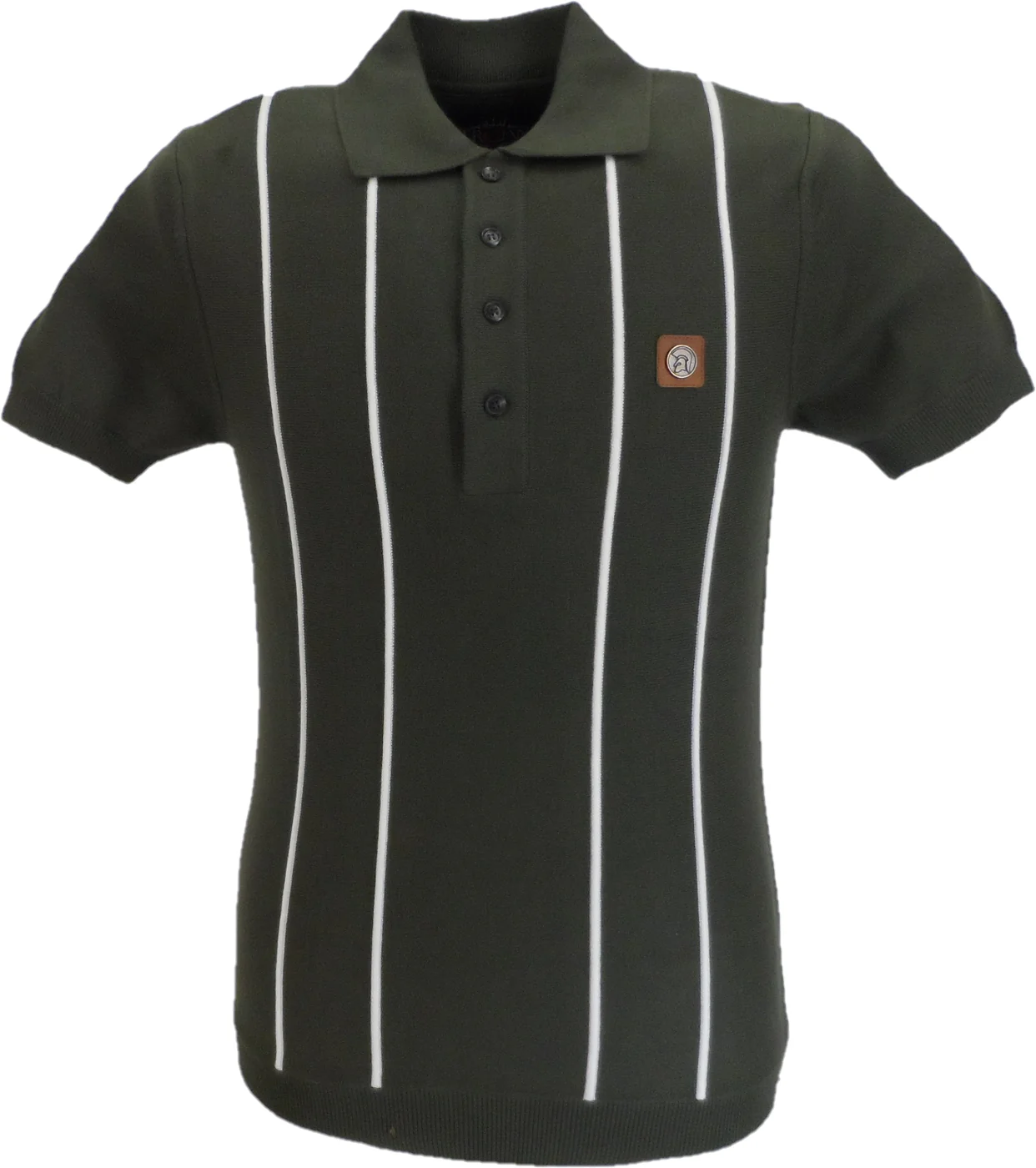 Trojan Mens Army Green Raised Stripe Knitted Polo Shirt