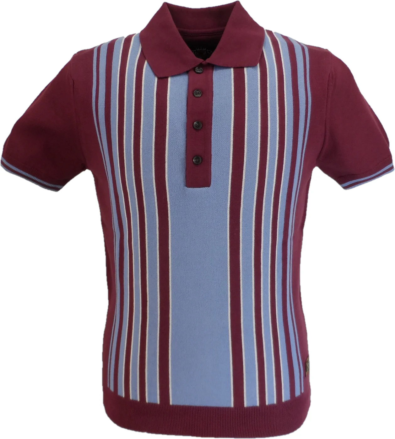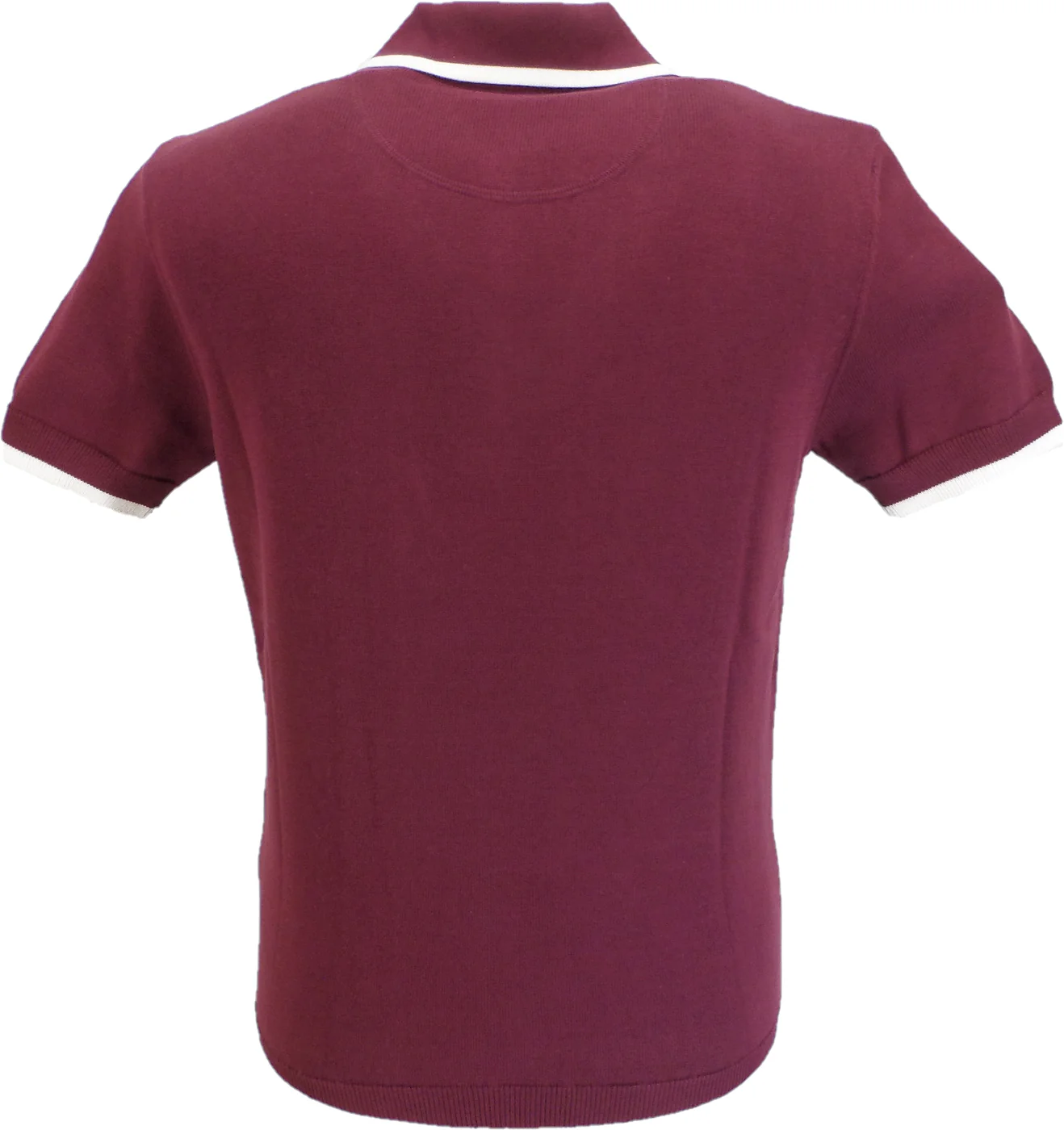 Trojan Mens Port Red Zip Stripe Fine Gauge Zipped Knitted Polo Shirt