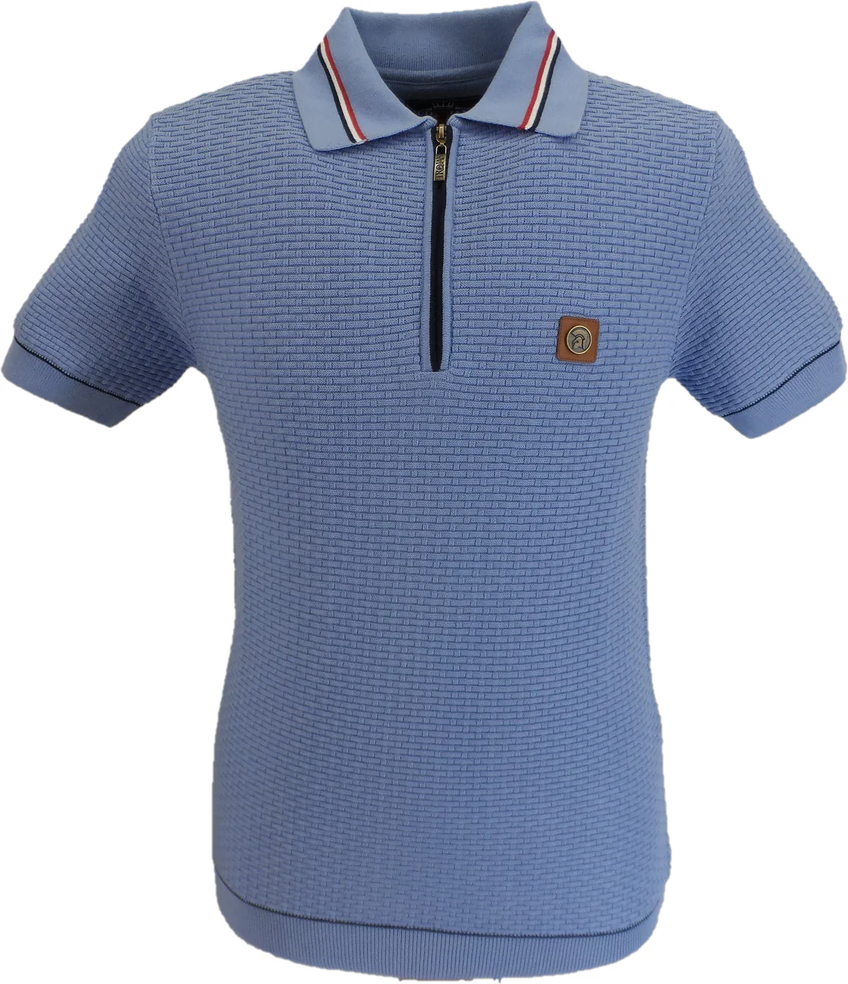 Trojan Mens Sky Blue Zip Basket Weave Zipped Knitted Polo Shirt