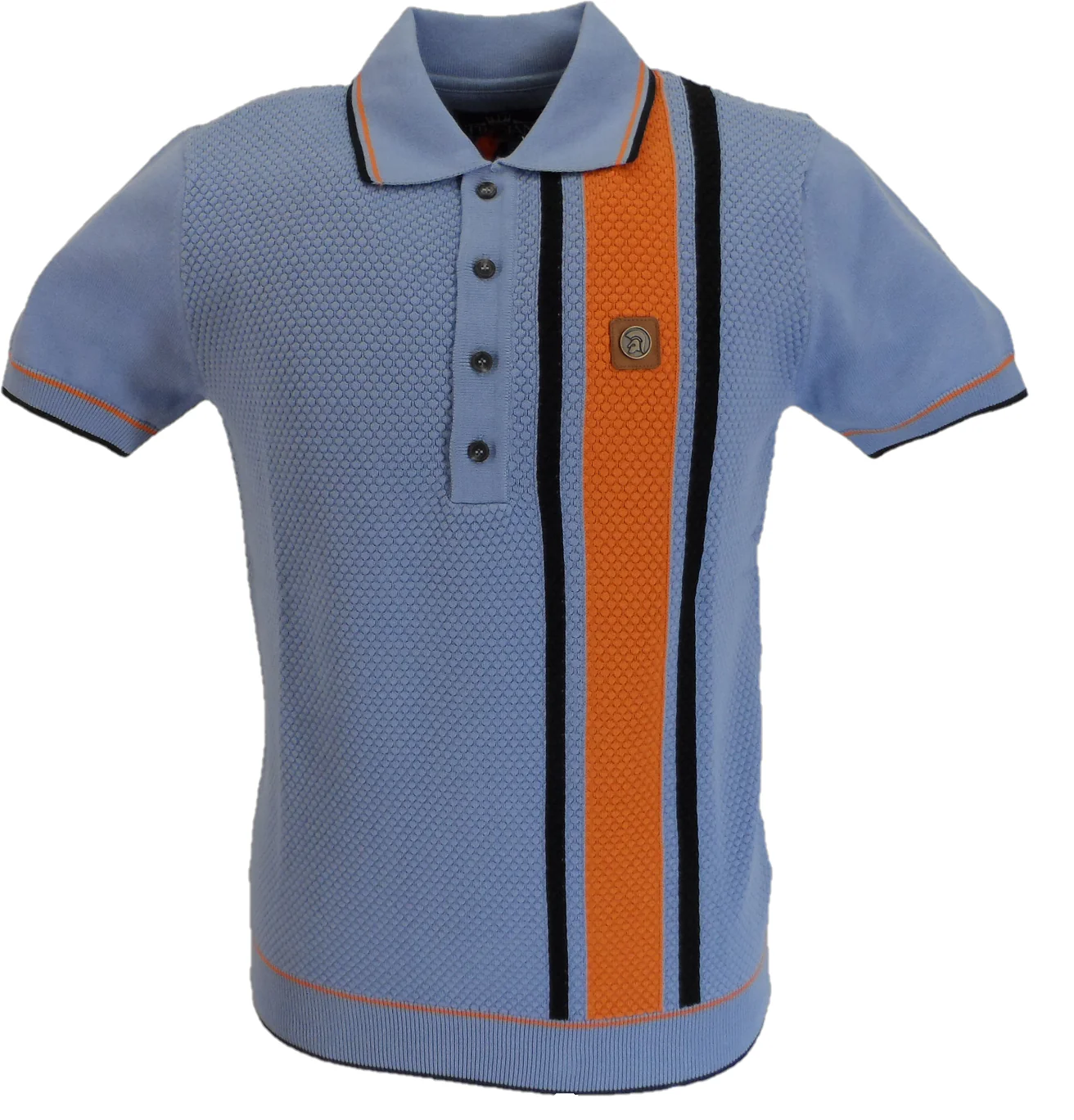 Trojan Mens Powder Blue Textured Stripe Knitted Polo Shirt