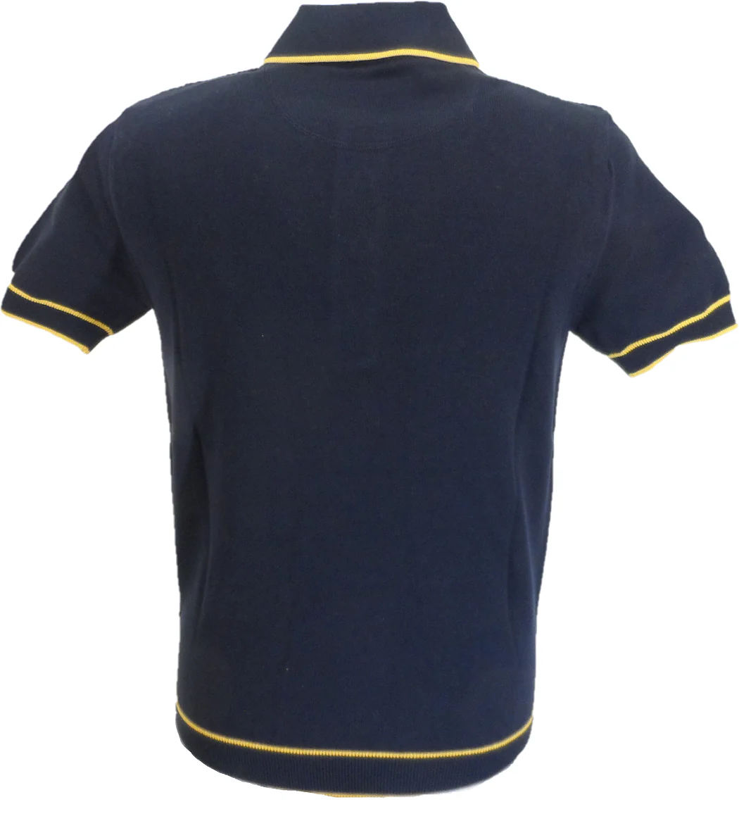 Trojan Records Mens Navy/Mustard Diamond Fine Gauge Knitted Polo Shirt
