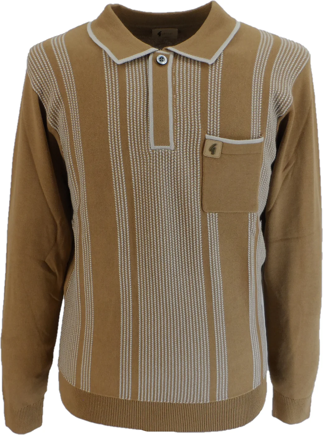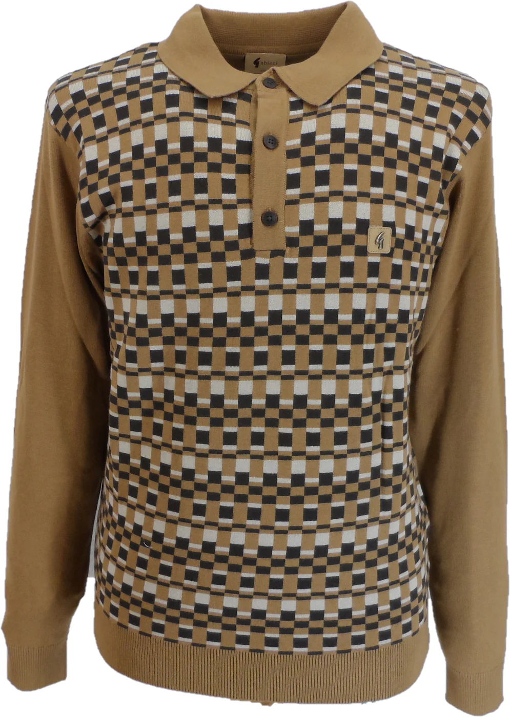 Gabicci Mens Frankie Nutmeg Brown Geo Retro Knitted Polo
