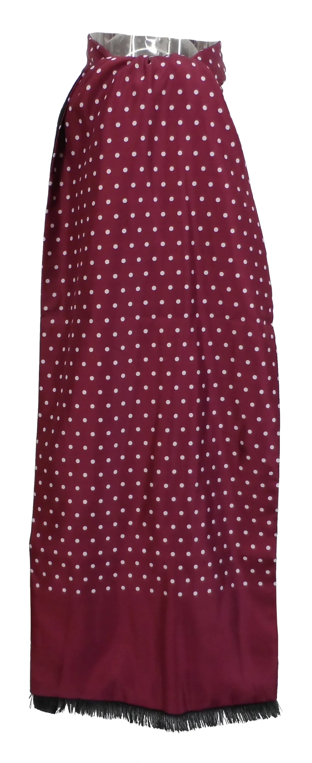 Mazeys Classic Retro Mod Mod Tassled Scarf Burgundy Polka Dot
