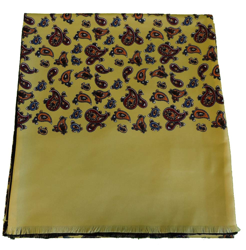 Mazeys Classic Retro Mod Mod Tassled Scarf Mustard Paisley