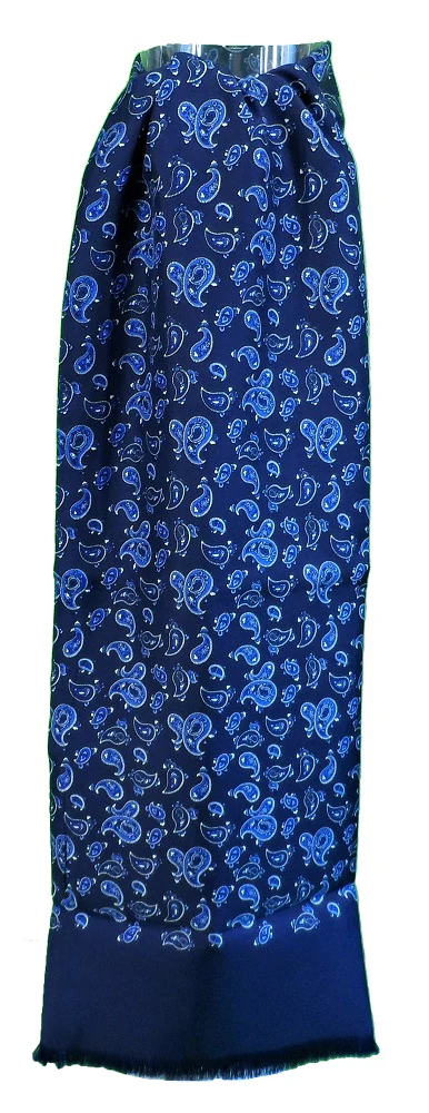 Mazeys Classic Retro Mod Mod Tassled Scarf Navy Paisley