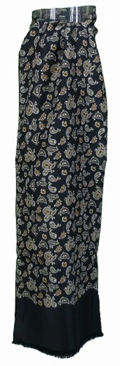 Mazeys Classic Retro Mod Mod Tassled Scarf Black Paisley