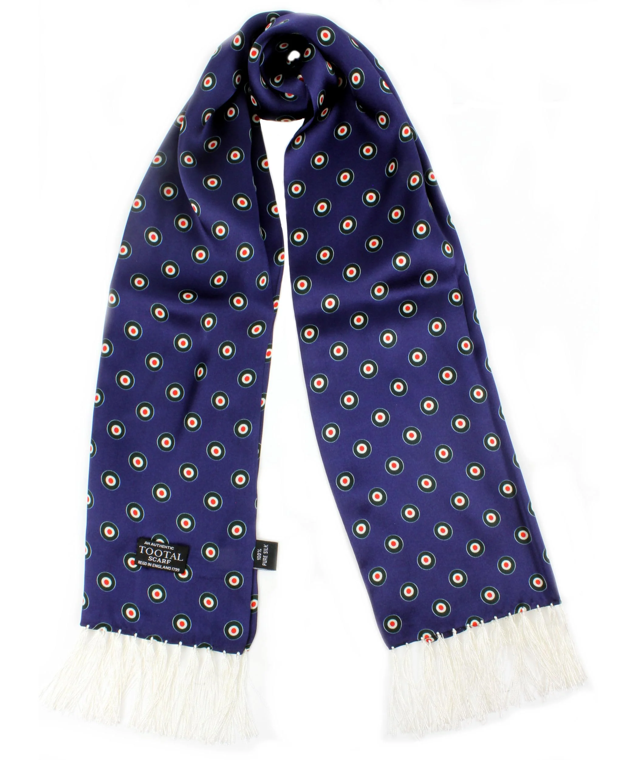 Mazeys Mens Classic Retro Mod Mod Tassled Scarf Navy Polka Dot