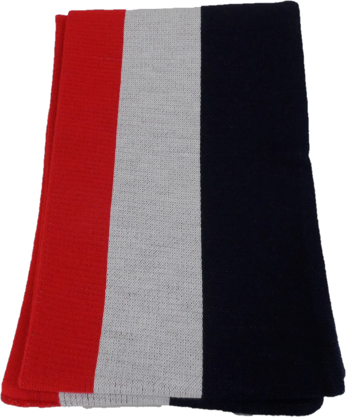 Mazeys Mens Red White and Blue Retro Knitted Collage Scarf