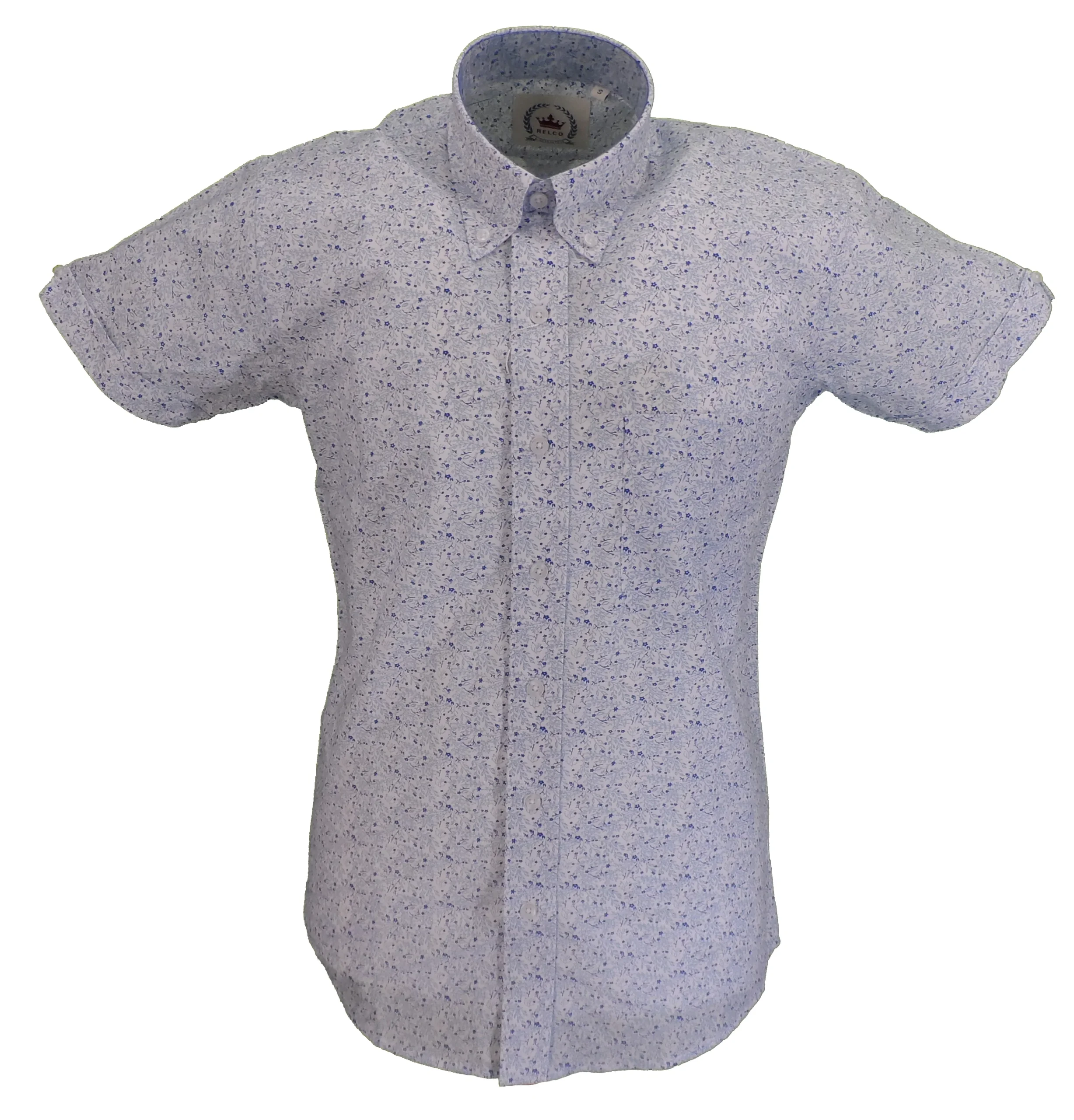 Relco Mens White Retro Floral Short Sleeved Shirt