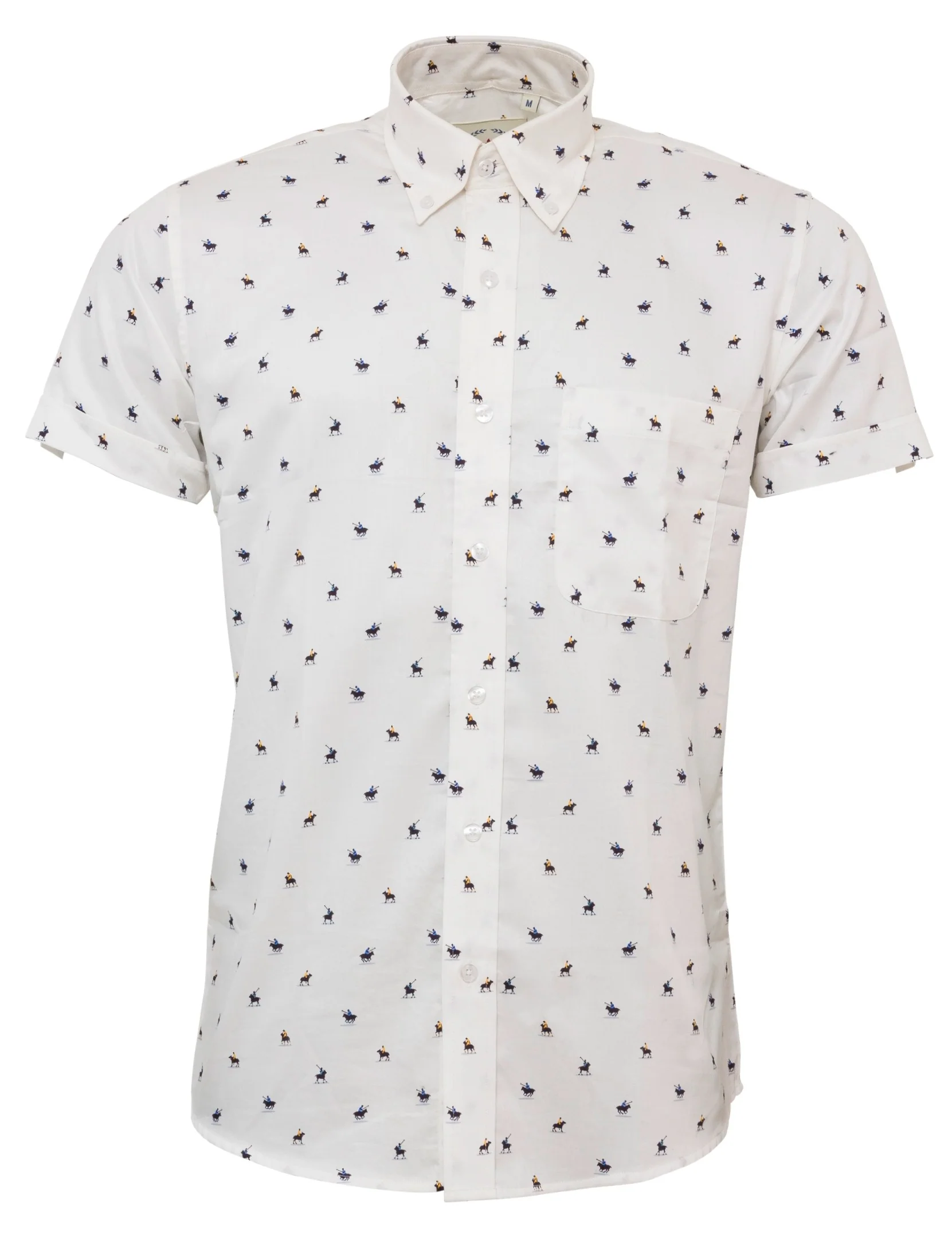 Relco White Polo Pony Print Cotton Short Sleeved Button Down Shirt