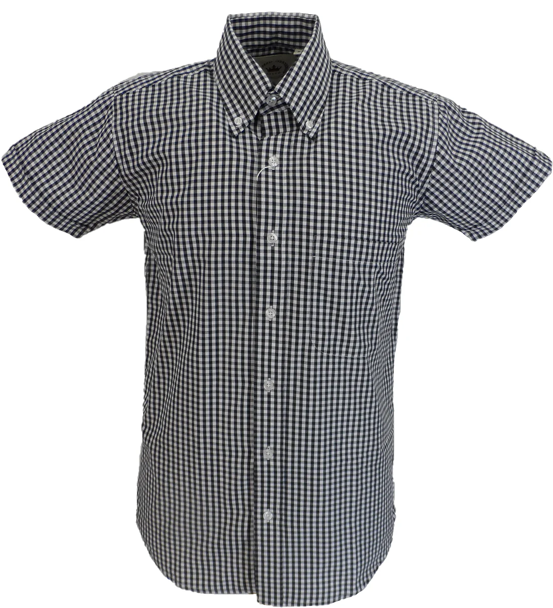 Relco Short Sleeved Black Gingham Check Button Down Shirts