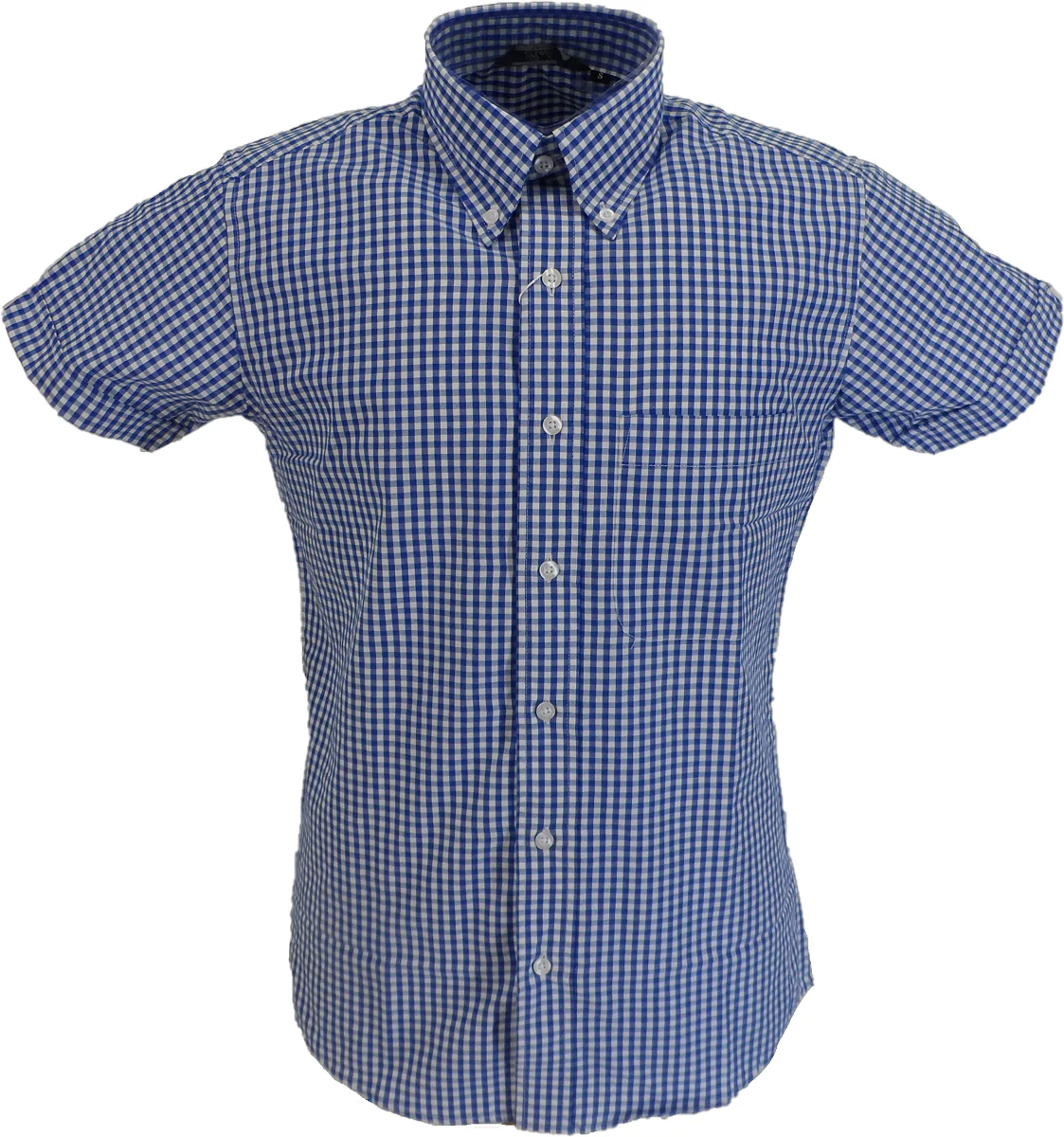 Relco Short Sleeved Blue Gingham Check Cotton Rich Button Down Shirts