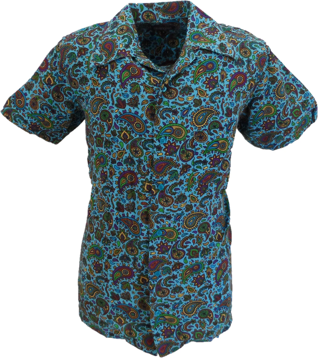 Run & Fly Mens Sky Blue Paisley Short Sleeved Shirt