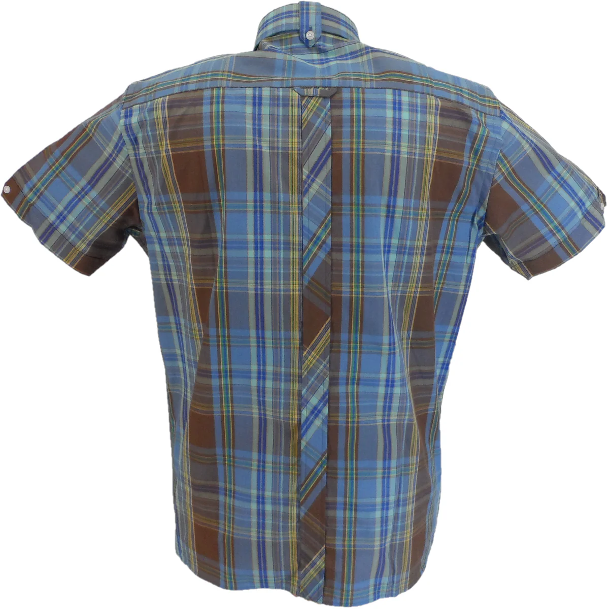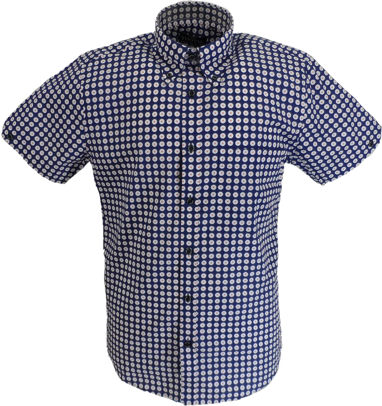 Tootal Mens Blue Mod Target Cotton Retro Down Short Sleeve Shirts
