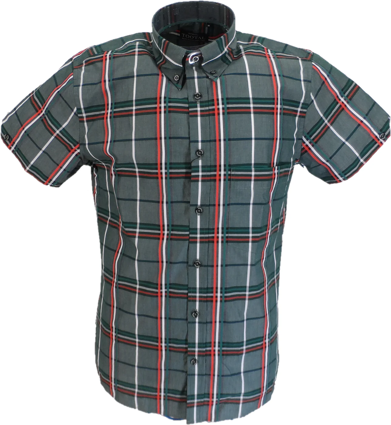 Tootal Mens Red Green Checked 100% Cotton Retro Down Short Sleeve Shirts