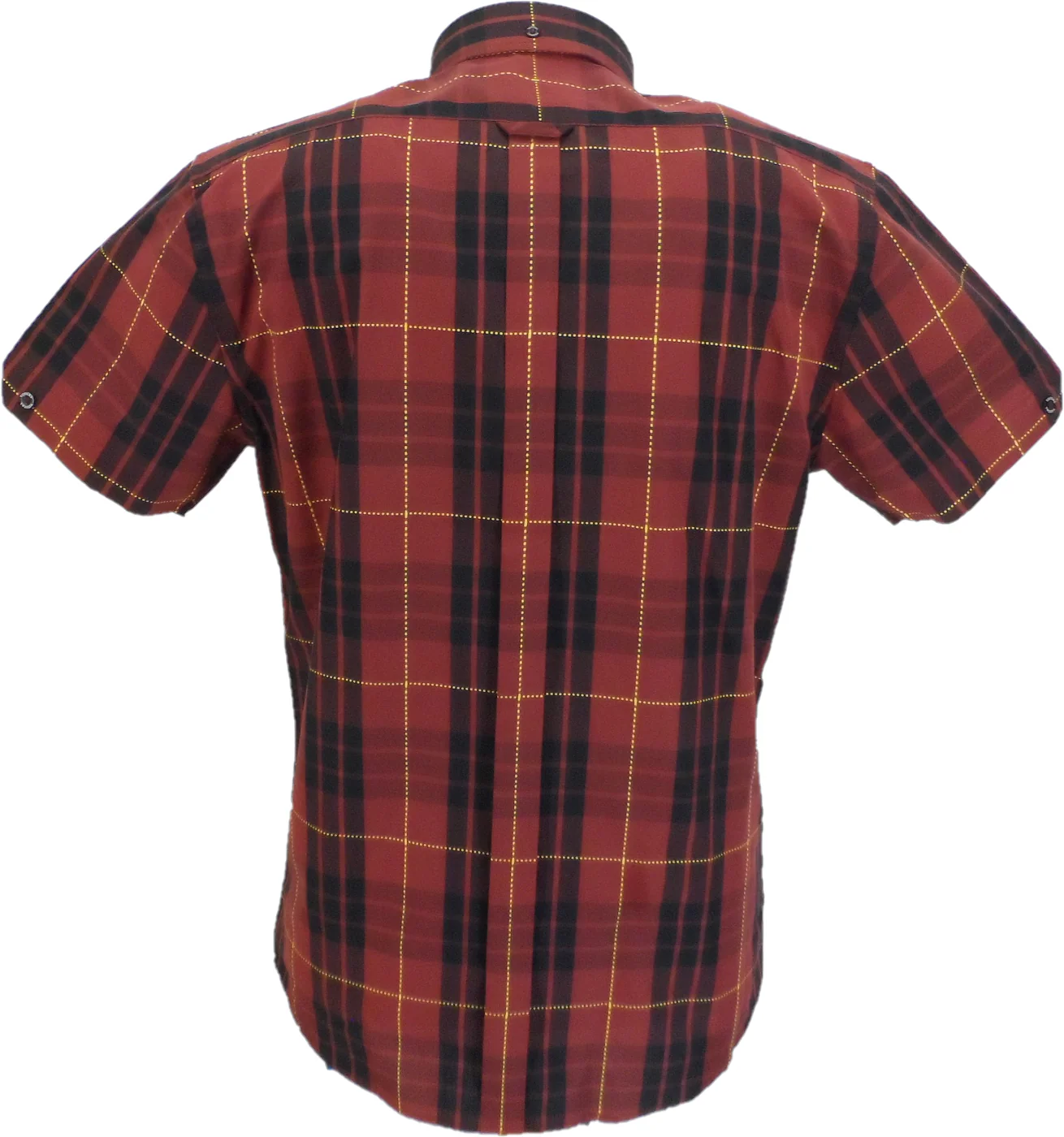 Tootal Mens Oxblood Checked 100% Cotton Retro Down Short Sleeve Shirts